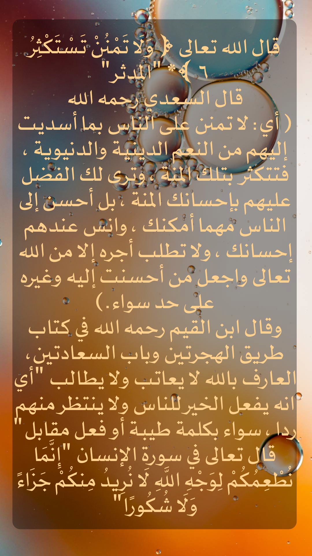 قال الله تعالى ( وَلَا تَمْنُنْ تَسْتَكْثِر)
