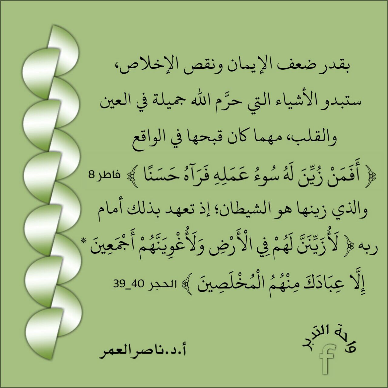 بقدر ضعف الإيمان ونقص الإخلاص؛ ستبدو الأشياء التي حرَّم الله جميلة في العين والقلب، مهما كان قبحها في الواقع: (أَفَمَن زُيِّنَ لَهُ سُوءُ عَمَ... المزيد