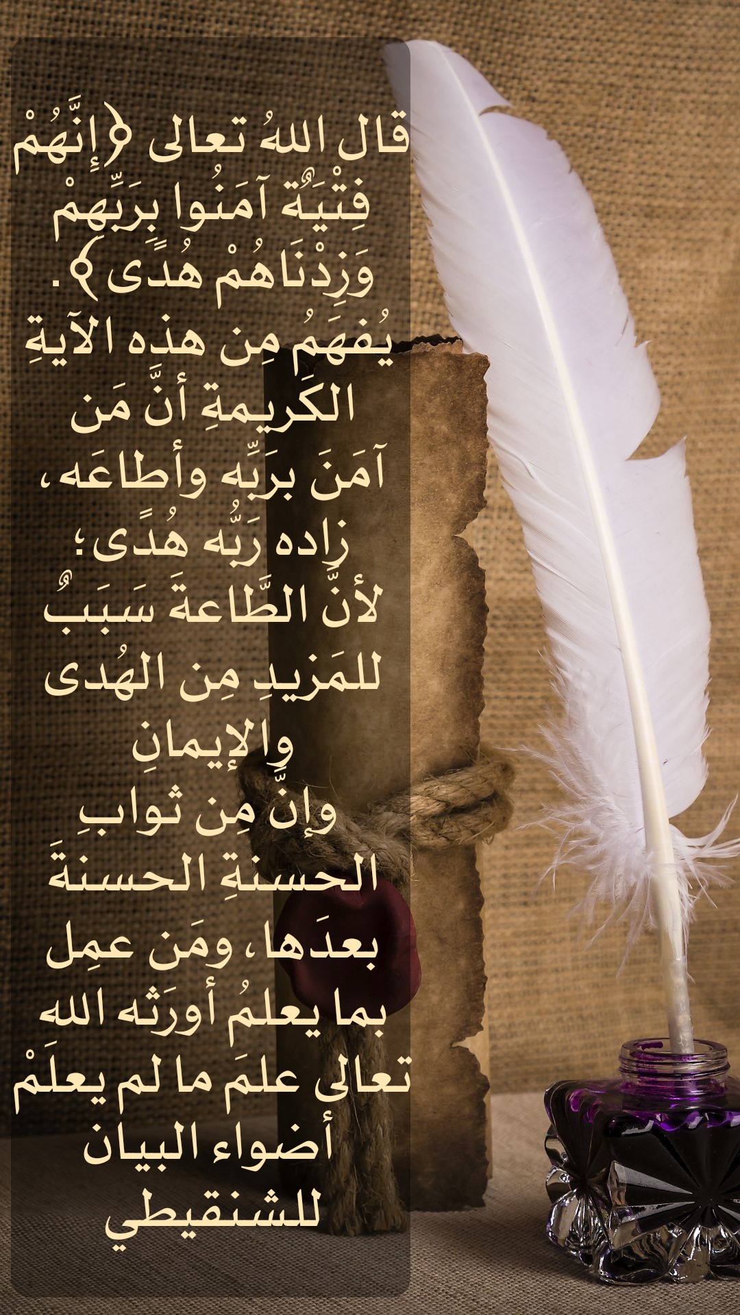 (إِنَّهُمْ فِتْيَةٌ آمَنُوا بِرَبِّهِمْ وَزِدْنَاهُمْ هُدًى )