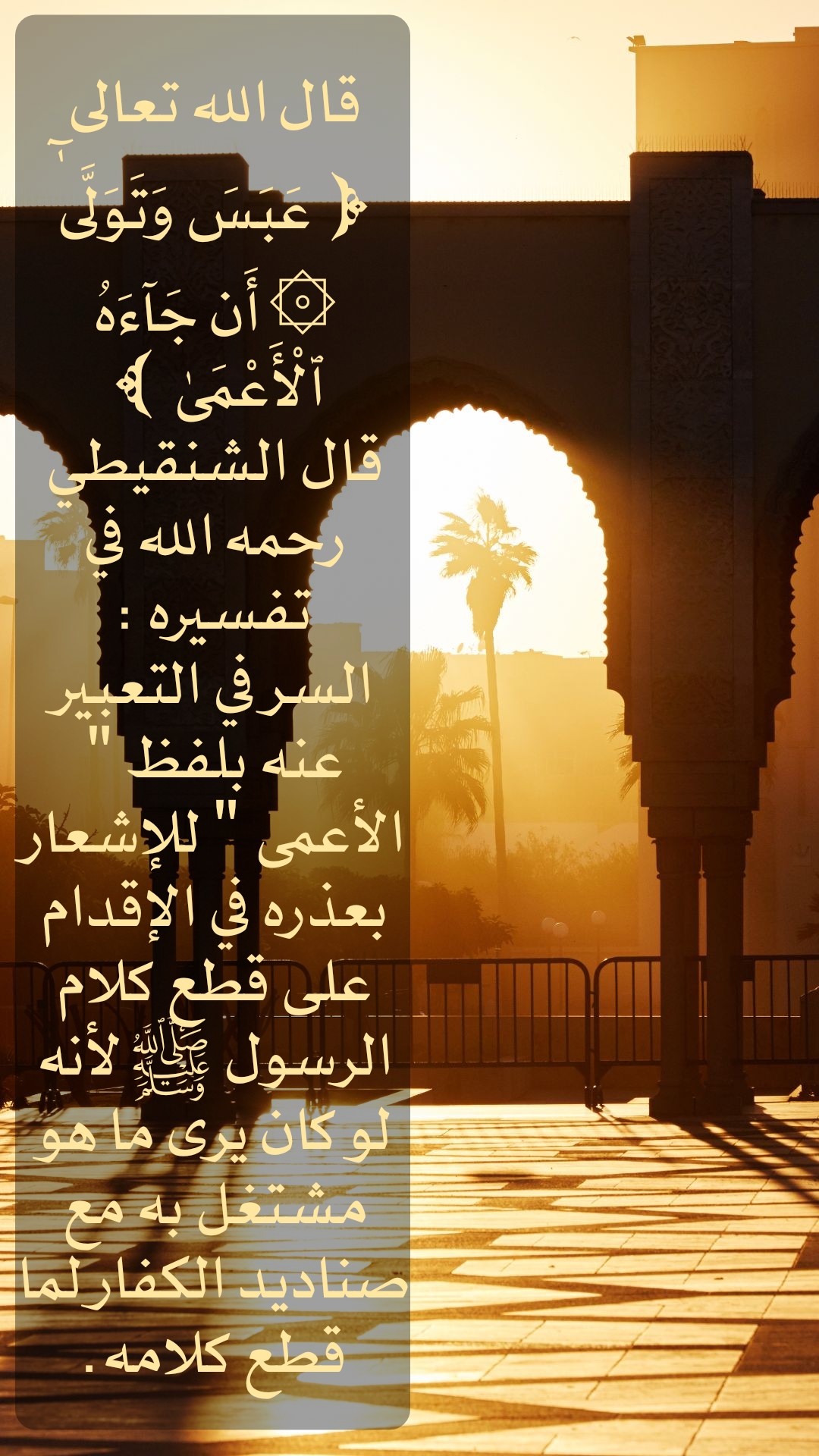 ﴿عَبَسَ وَتَوَلَّى . أَن جَاءَهُ الْأَعْمَى )