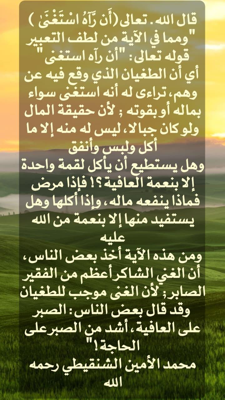 • ومما في الآية من لطف التعبير قوله تعالى : " أن رآه استغنى" أي أن الطغيان الذي وقع فيه عن وهم، تراءى له أنه استغنى سواء بماله أو بقوته ; لأن حقيقة المال و... المزيد