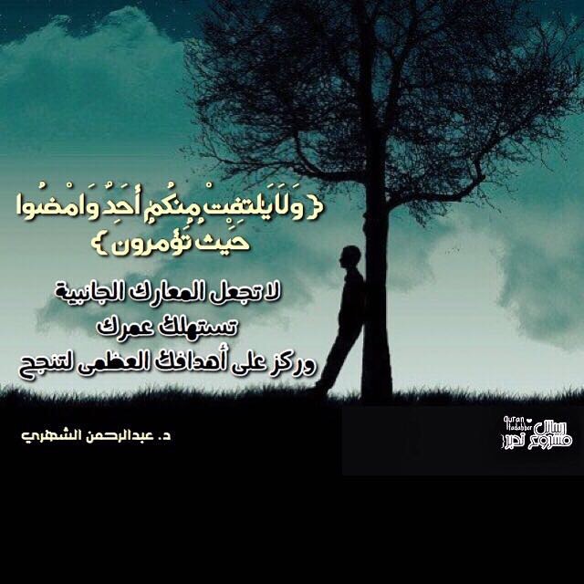 (وَلَا يَلْتَفِتْ مِنْكُمْ أَحَدٌ وَامْضُوا حَيْثُ تُؤْمَرُونَ) لا تجعل المعارك الجانبيَّة