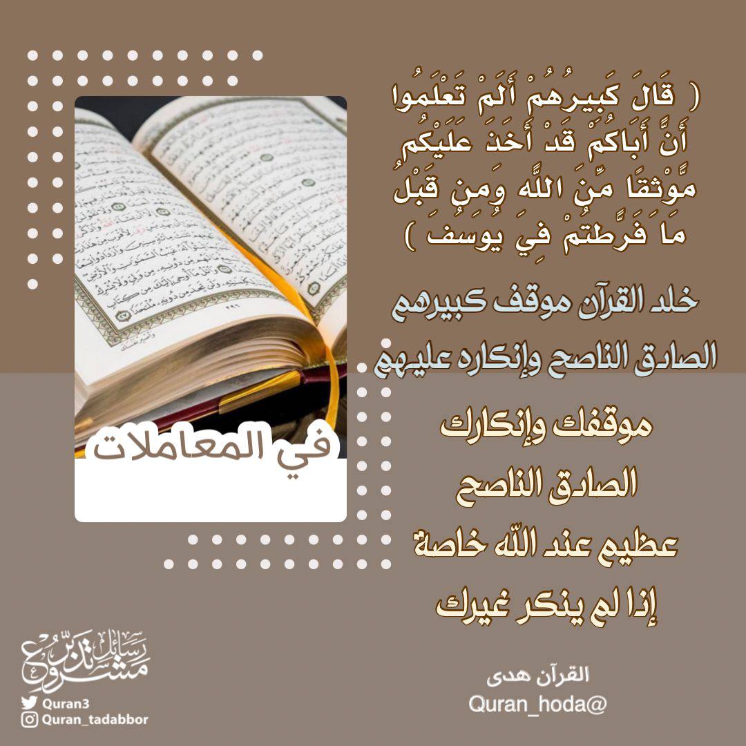 ﴿قَالَ كَبِيرُهُمْ أَلَمْ تَعْلَمُوا أَنَّ أَبَاكُمْ قَدْ أَخَذَ عَلَيْكُم مَّوْثِـقًا مِّنَ اللَّهِ وَمِن قَبْلُ مَا فَرَّطتُمْ فِي يُوسُفَ﴾