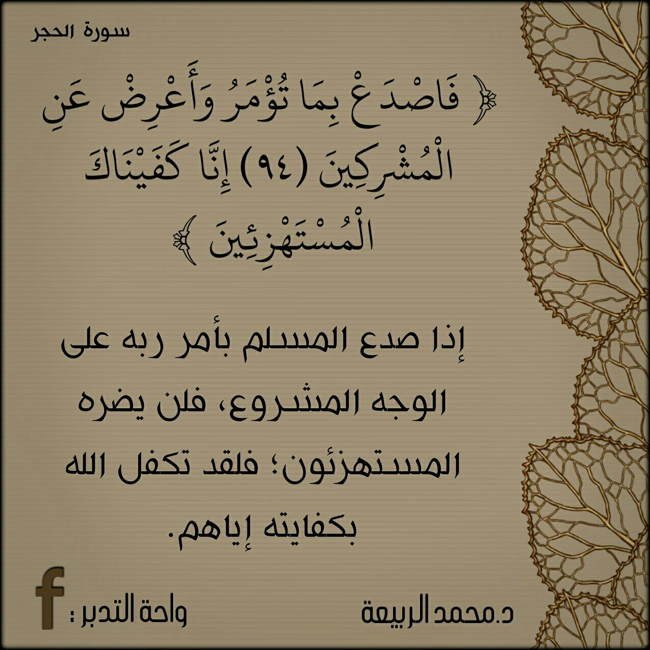 ﴿فَاصْدَعْ بِمَا تُؤْمَرُ وَأَعْرِضْ عَنِ الْمُشْرِكِينَ ⋄ إِنَّا كَفَيْنَاكَ الْمُسْتَهْزِئِينَ﴾: