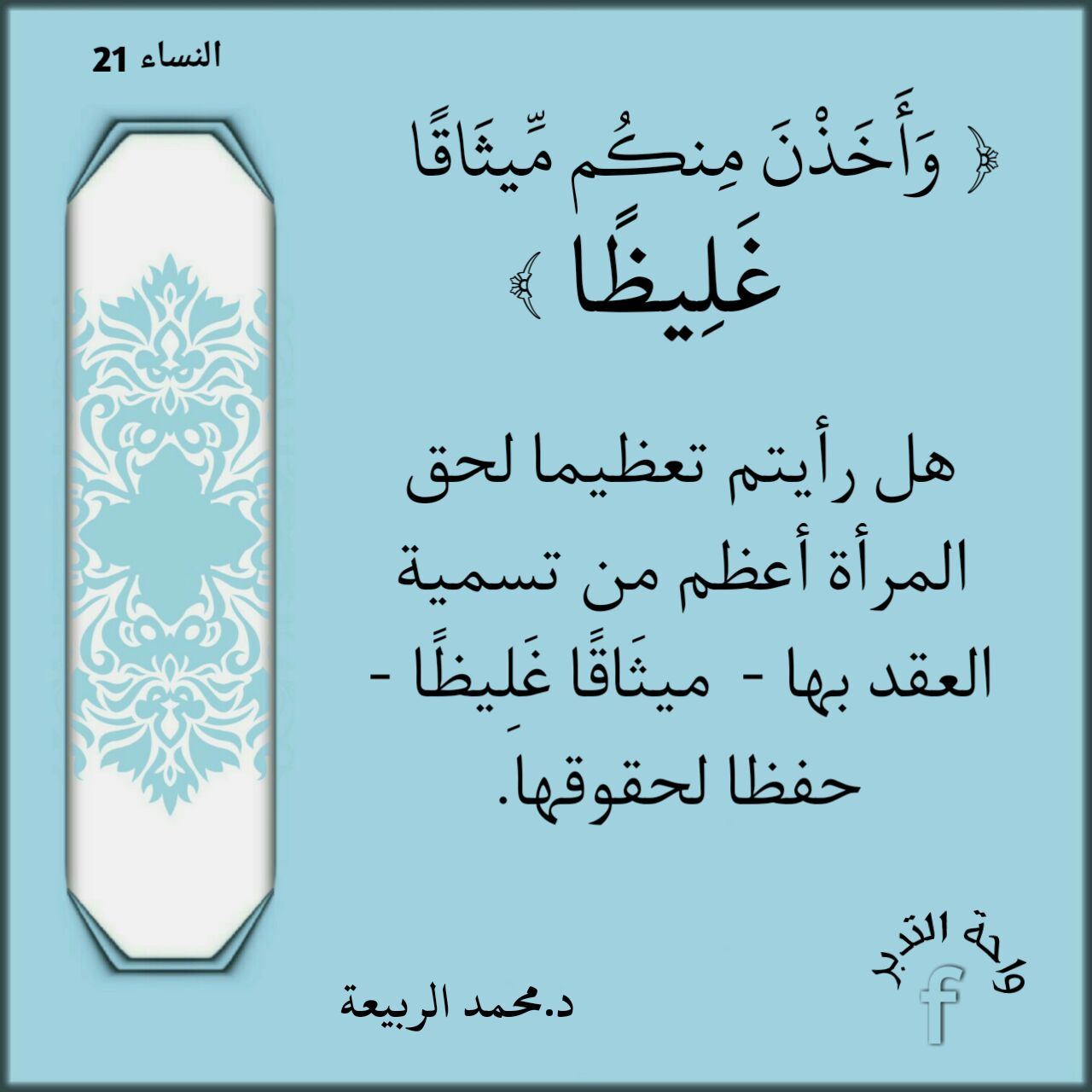 هل رأيتم تعظيما لحق المرأة أعظم من تسمية العقد بها - ميثَاقًا غَلِيظًا - حفظا لحقوقها.