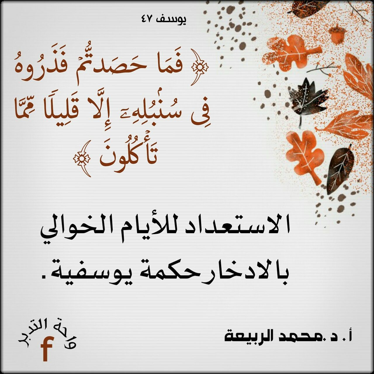 الاستعداد للأيام الخوالي بالادخار حكمة يوسفية.