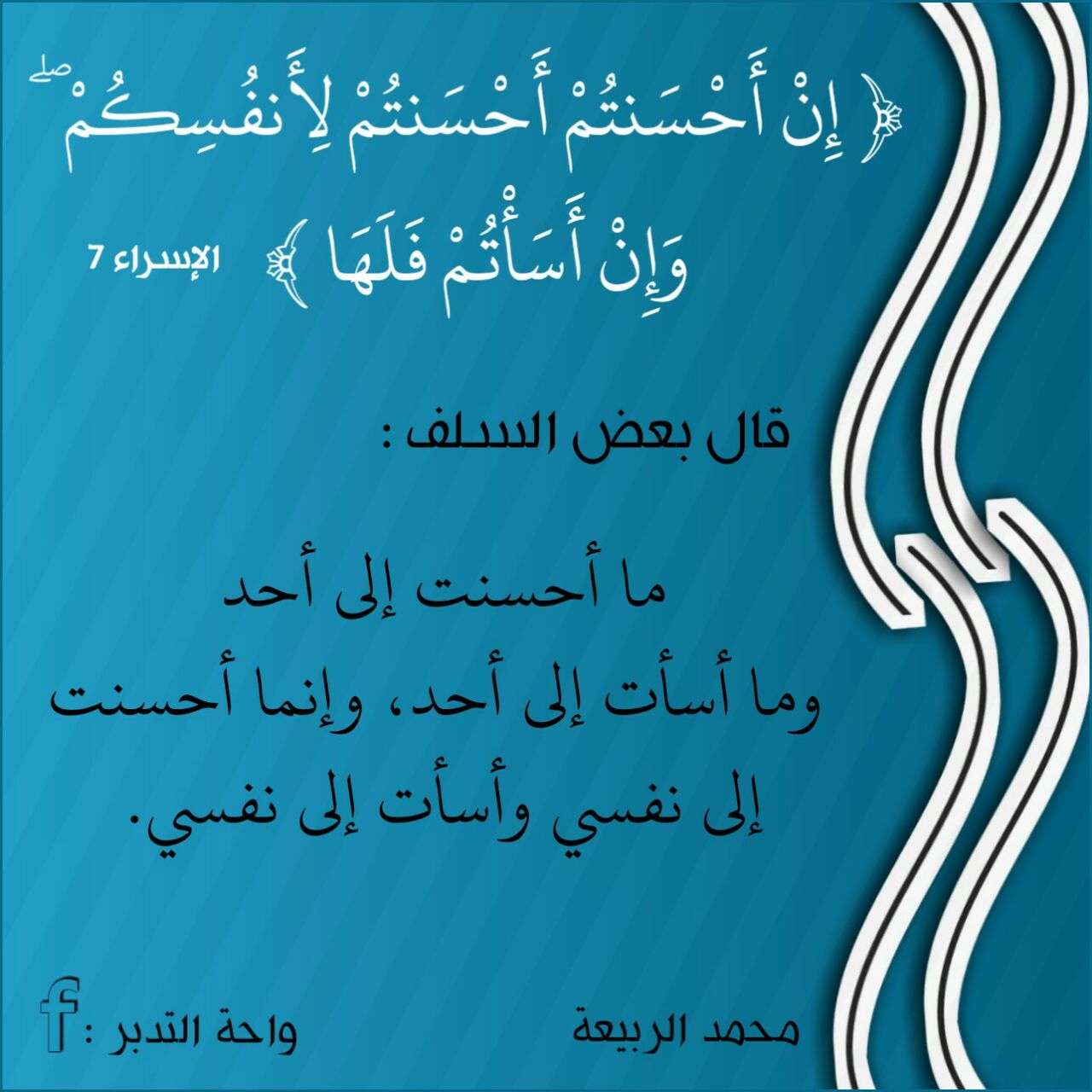 قال بعض السلف: ما أحسنت إلى أحد وما أسأت إلى أحد، وإنما أحسنت إلى نفسي وأسأت إلى نفسي.