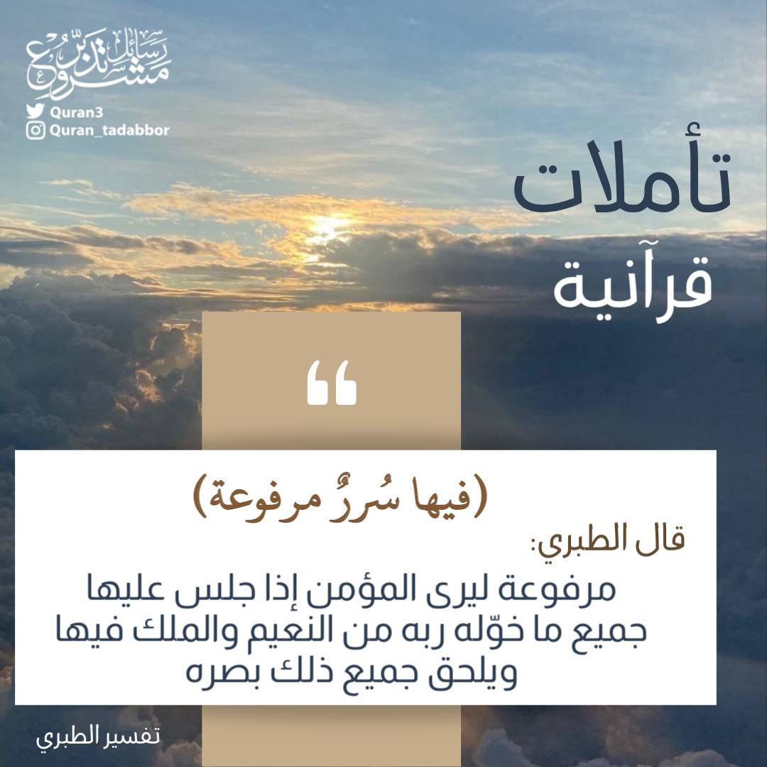 ﴿فِيهَا سُرُرٌ مَّرْفُوعَةٌ﴾