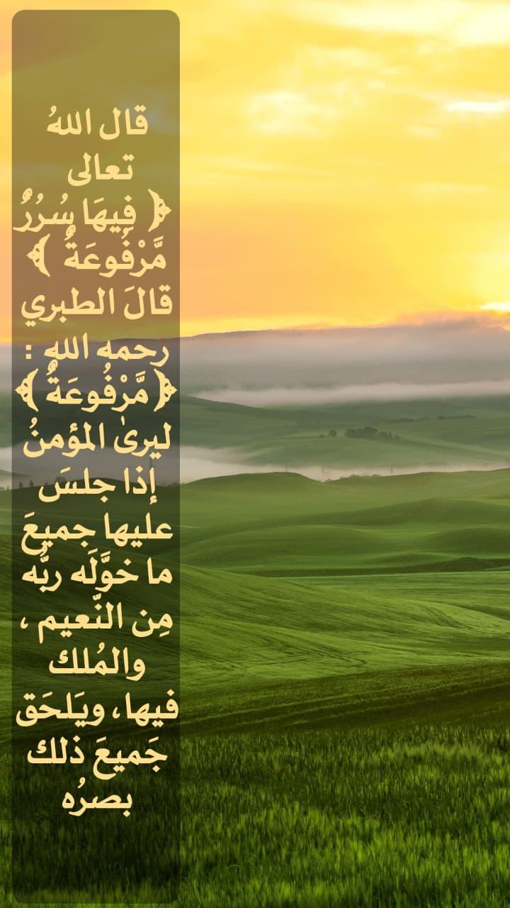 "مرفوعة ليرى المؤمن إذا جلس عليها جميع ما خوّله ربه من النعيم والملك فيها، ويلحق جميع ذلك بصره".
