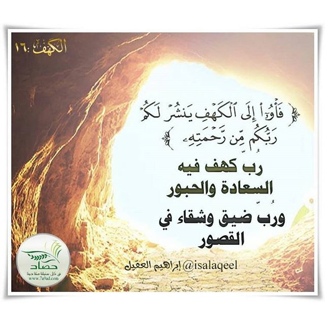 ﴿فَأووا إلى الكهف ينشر لكم ربكم من رحمته﴾ رُبّ كهف فيه السعادة والحبور ورُبّ ضيق وشقاء في القصور