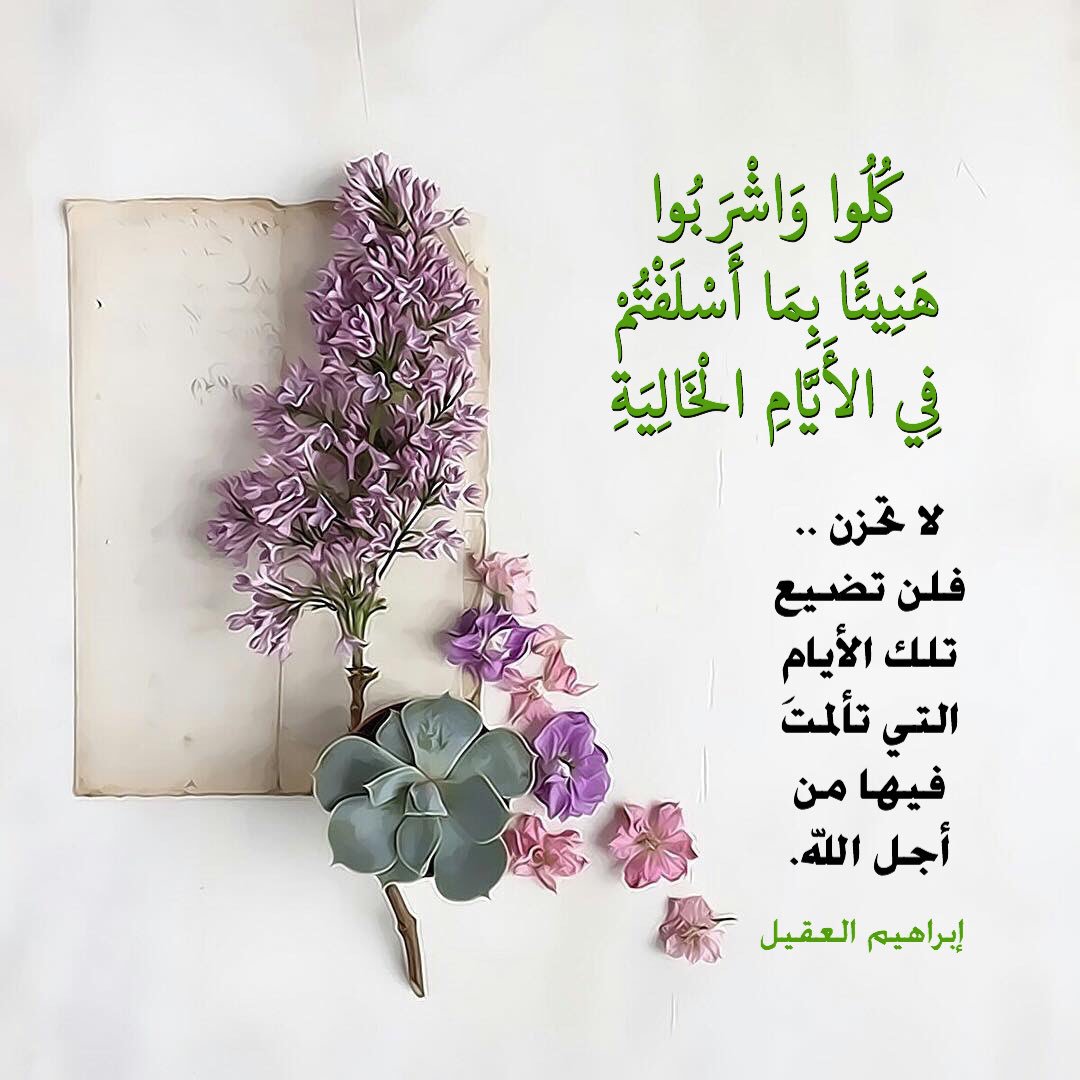 (كُلُوا وَاشْرَبُوا هَنِيئًا بِمَا أَسْلَفْتُمْ فِي الْأَيَّامِ الْخَالِيَةِ)