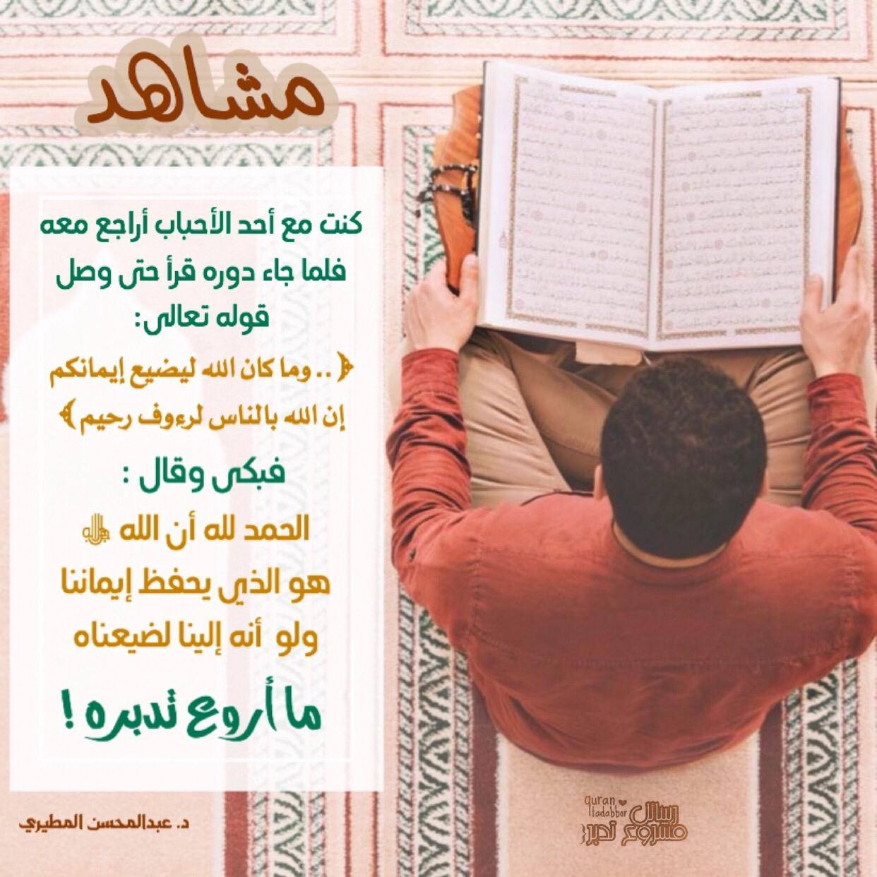 كنت مع أحد الأحباب أراجع معه فلما جاء دوره قرأ حتى وصل قوله تعالى: (.. وما كان الله ليضيع إيمانكم إن الله با... المزيد