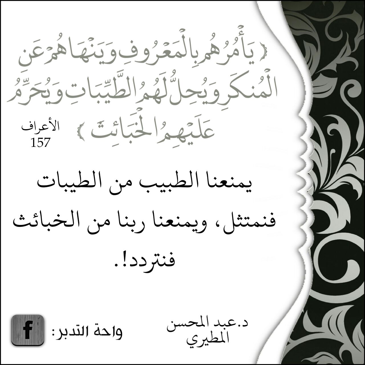 ﴿يَأْمُرُهُم بِالْمَعْرُوفِ وَيَنْهَاهُمْ عَنِ الْمُنكَرِ وَيُحِلُّ لَهُمُ الطَّيِّبَاتِ وَيُحَرِّمُ عَلَيْهِمُ الْخَبَائِثَ﴾: