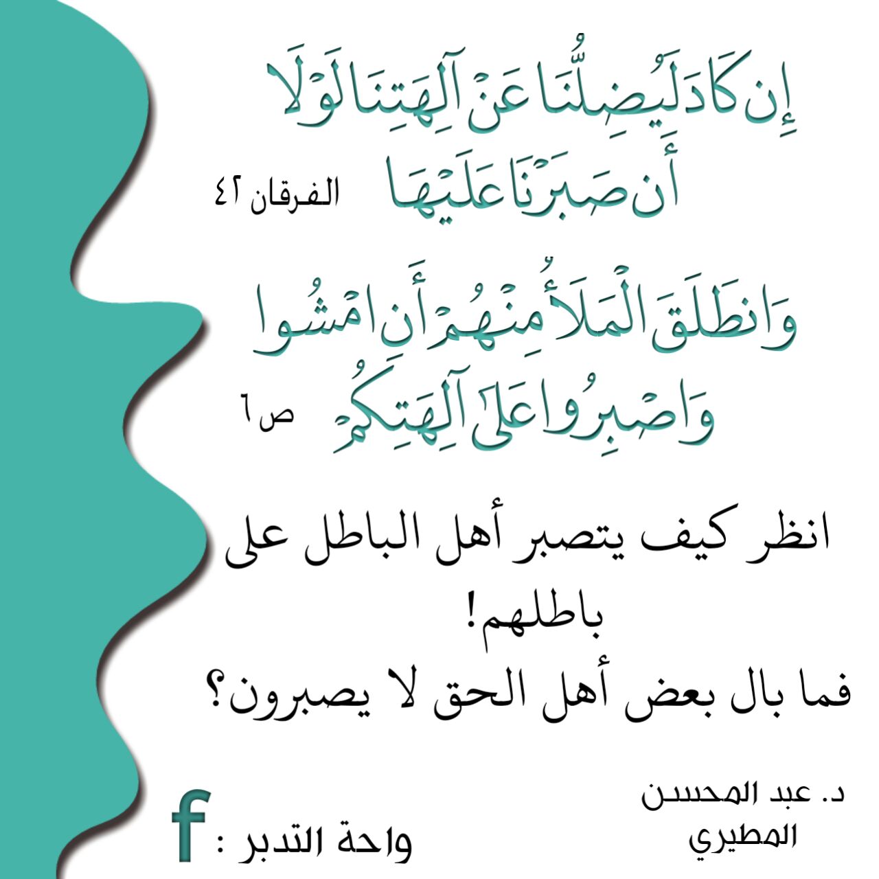 ﴿إِن كَادَ لَيُضِلُّنَا عَنْ آلِهَتِنَا لَوْلَا أَن صَبَرْنَا عَلَيْهَا﴾ ⋄ ﴿وَانطَلَقَ الْمَلَأُ مِنْهُمْ أَنِ امْشُوا وَاصْبِرُوا عَلَى آلِهَتِكُمْ﴾: