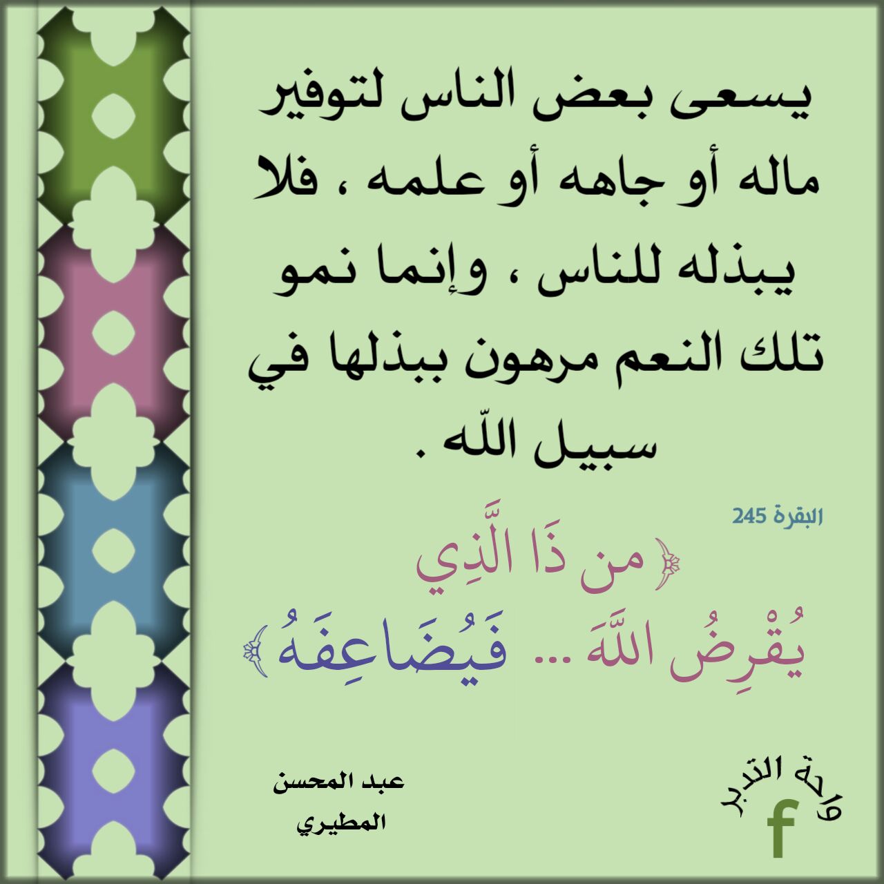 ﴿مَّن ذَا الَّذِي يُقْرِضُ اللَّهَ قَرْضًا حَسَنًا فَيُضَاعِفَهُ﴾: