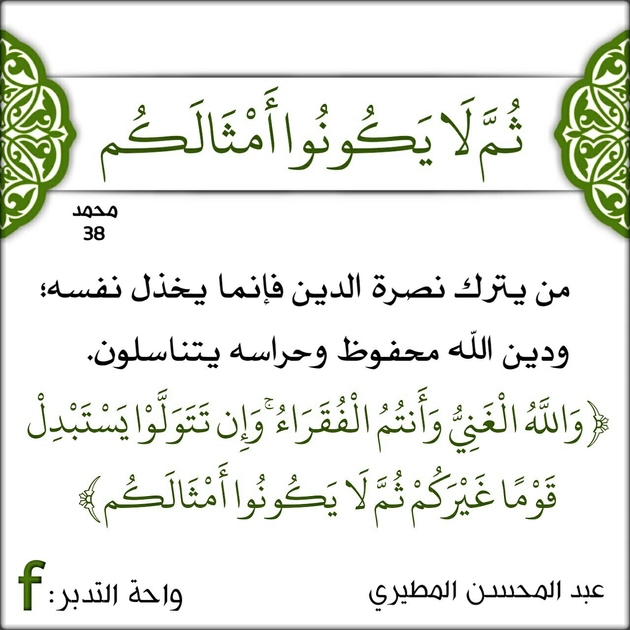 ﴿وَاللَّهُ الْغَنِيُّ وَأَنتُمُ الْفُقَرَاءُ وَإِن تَتَوَلَّوْا يَسْتَبْدِلْ قَوْمًا غَيْرَكُمْ ثُمَّ لَا يَكُونُوا أَمْثَالَكُم﴾:
