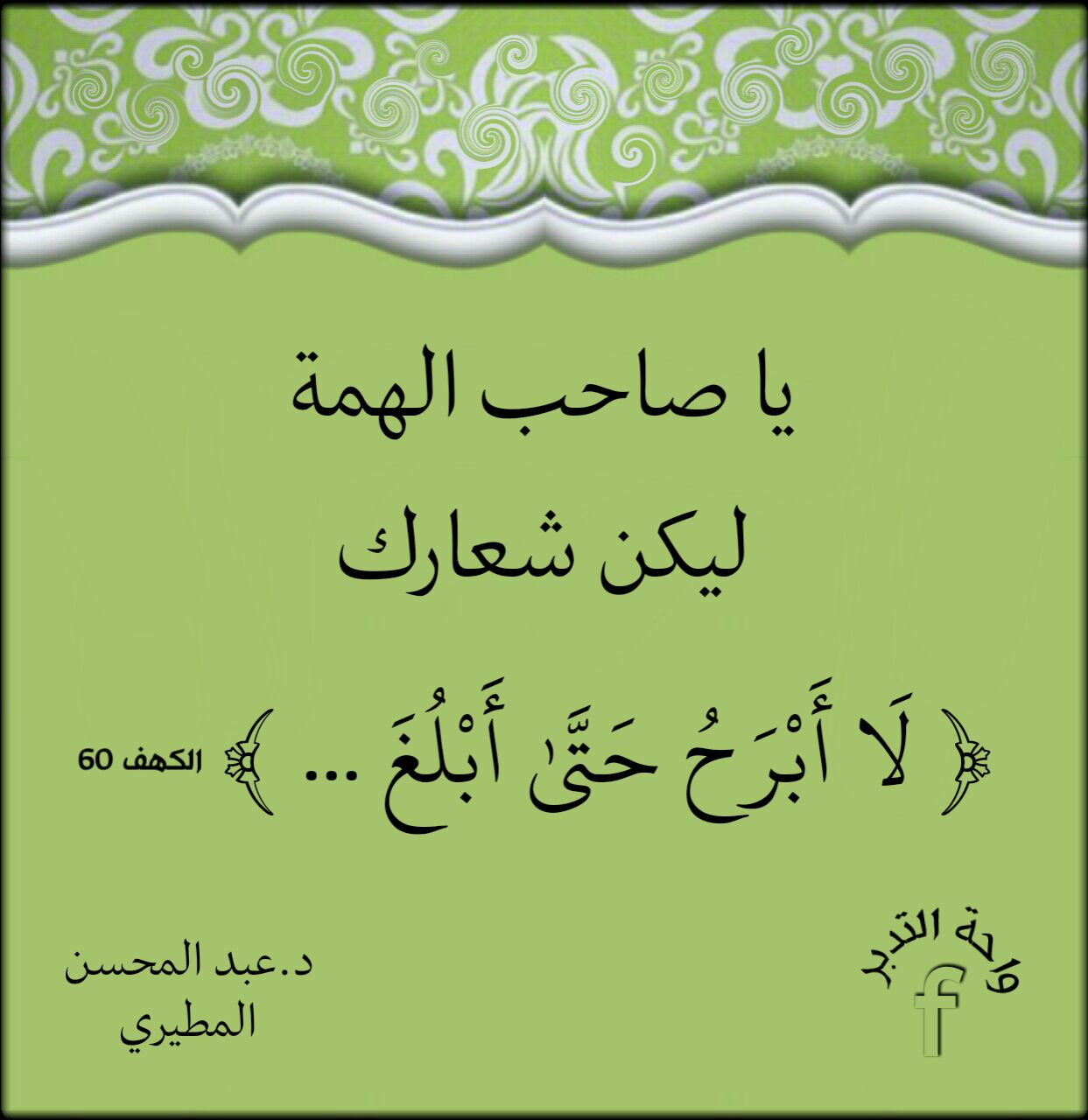 يا صاحب الهمة ليكن شعارك (لَا أَبْرَحُ حَتَّىٰ أَبْلُغَ ...).