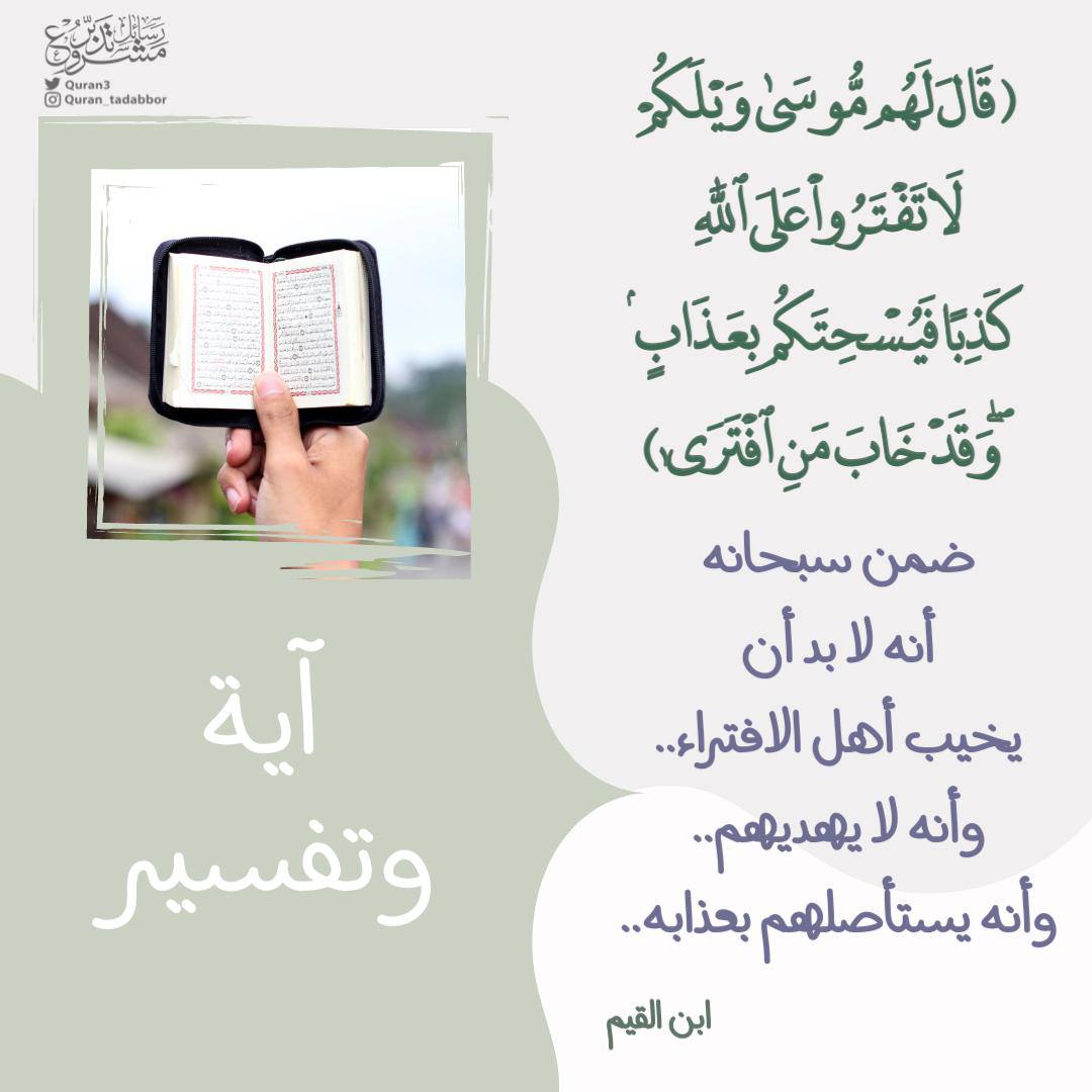 ﴿قَالَ لَهُم مُّوسَى وَيْلَكُمْ لَا تَفْتَرُوا عَلَى اللَّهِ كَذِبًا فَيُسْحِتَكُم بِعَذَابٍ وَقَدْ خَابَ مَنِ افْتَرَى﴾