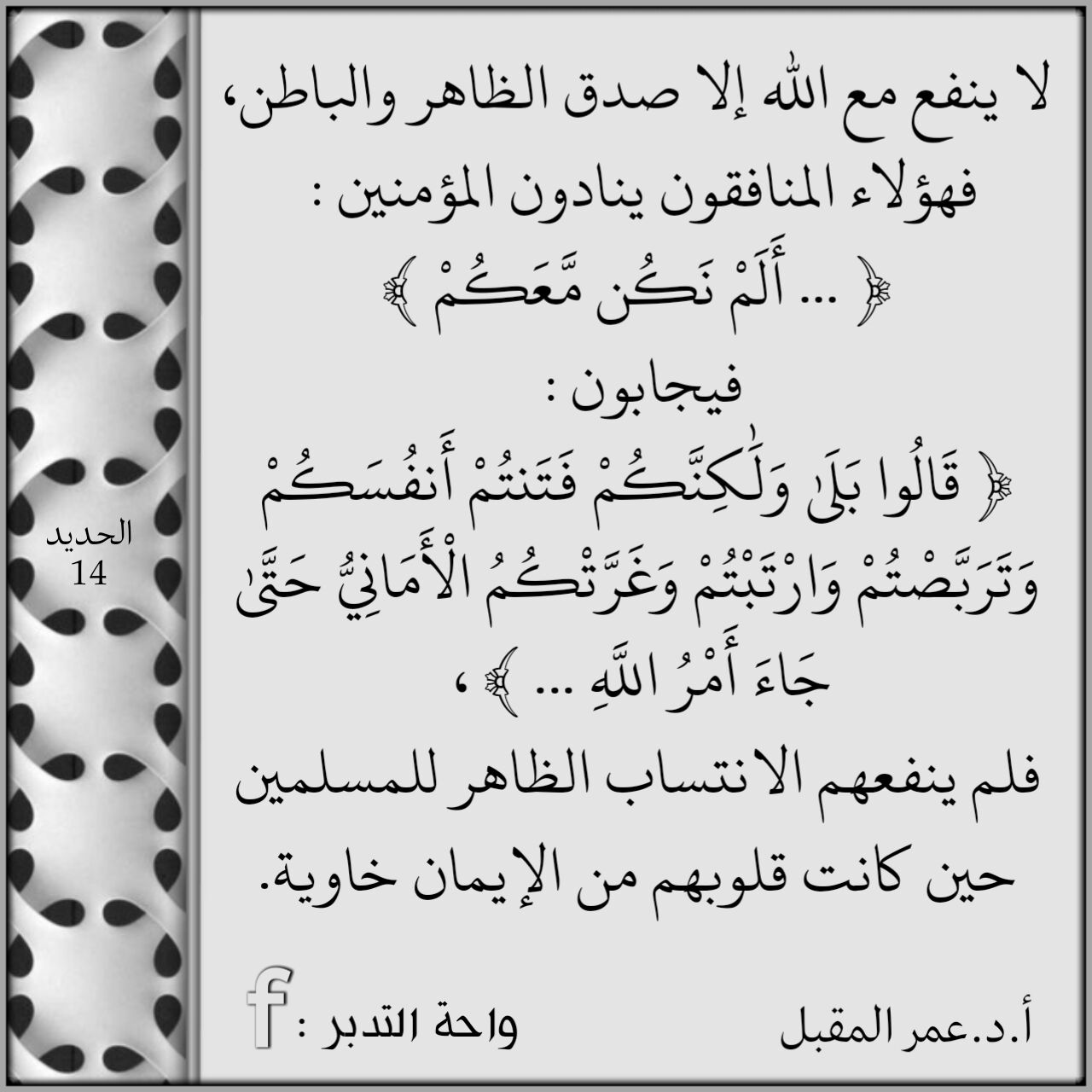 ﴿يُنَادُونَهُمْ أَلَمْ نَكُن مَّعَكُمْ قَالُوا بَلَى وَلَكِنَّكُمْ فَتَنتُمْ أَنفُسَكُمْ وَتَرَبَّصْتُمْ وَارْتَبْتُمْ وَغَرَّتْكُمُ الْأَمَانِيُّ حَتَّى جَاءَ أَمْرُ اللَّهِ..﴾: