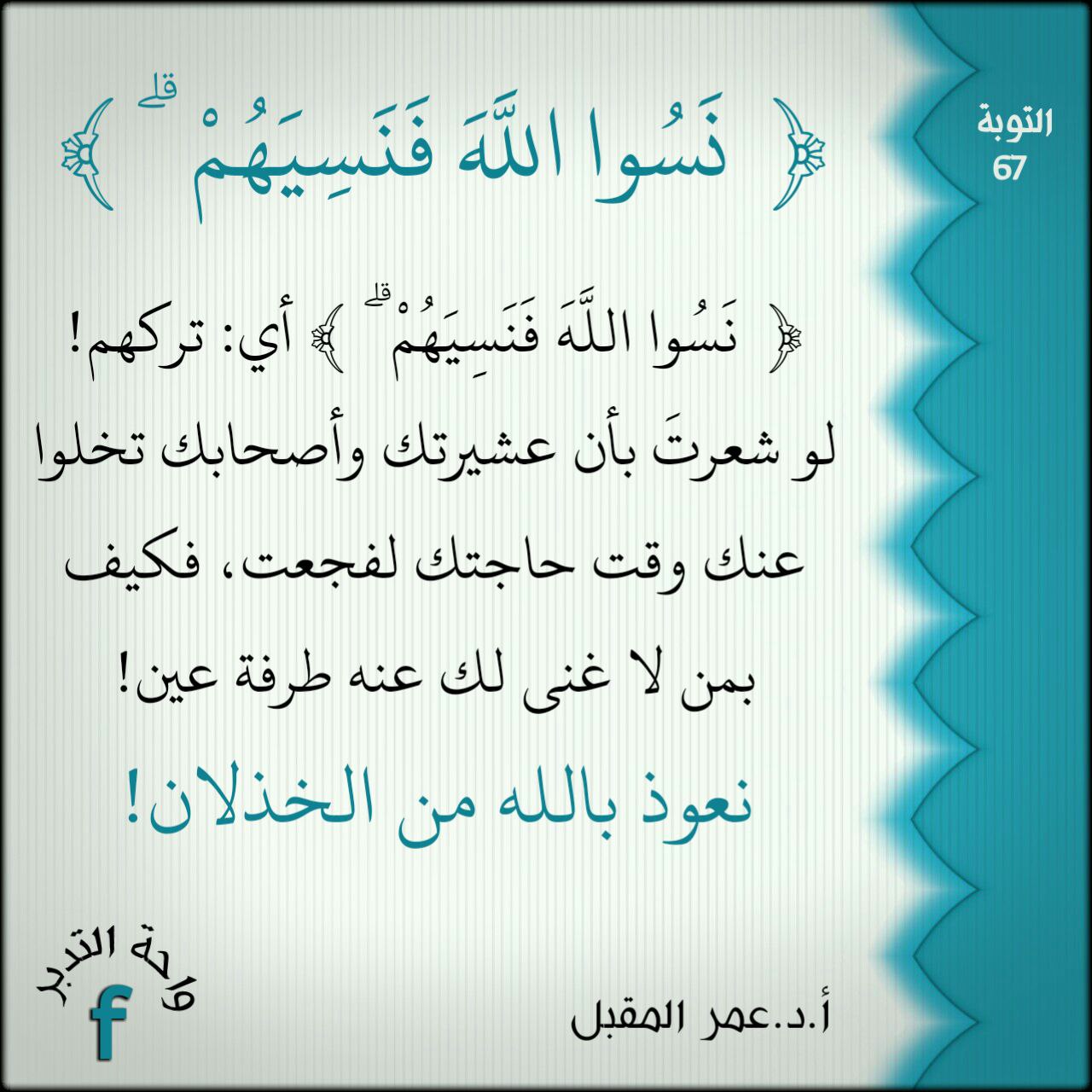(نَسُوا اللَّهَ فَنَسِيَهُمْ) أي: تركهم! لو شعرتَ بأن عشيرتك وأصحابك تخلوا عنك وقت حاجتك لفجعت، فكيف بمن لا غنى لك عنه طرفة عين! نعوذ بالله من الخذلان!.