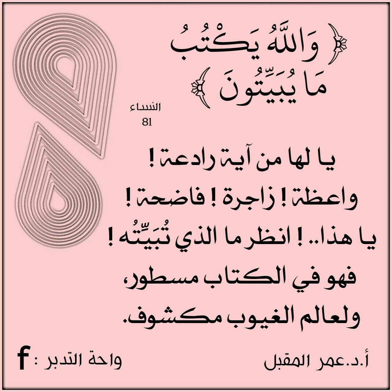 يا لها من آية رادعة! واعظة! زاجرة! فاضحة! يا هذا..! انظر ما الذي تُبَيِّتُه! فهو في الكتاب مسطور، ولعالم الغيوب مكشوف.