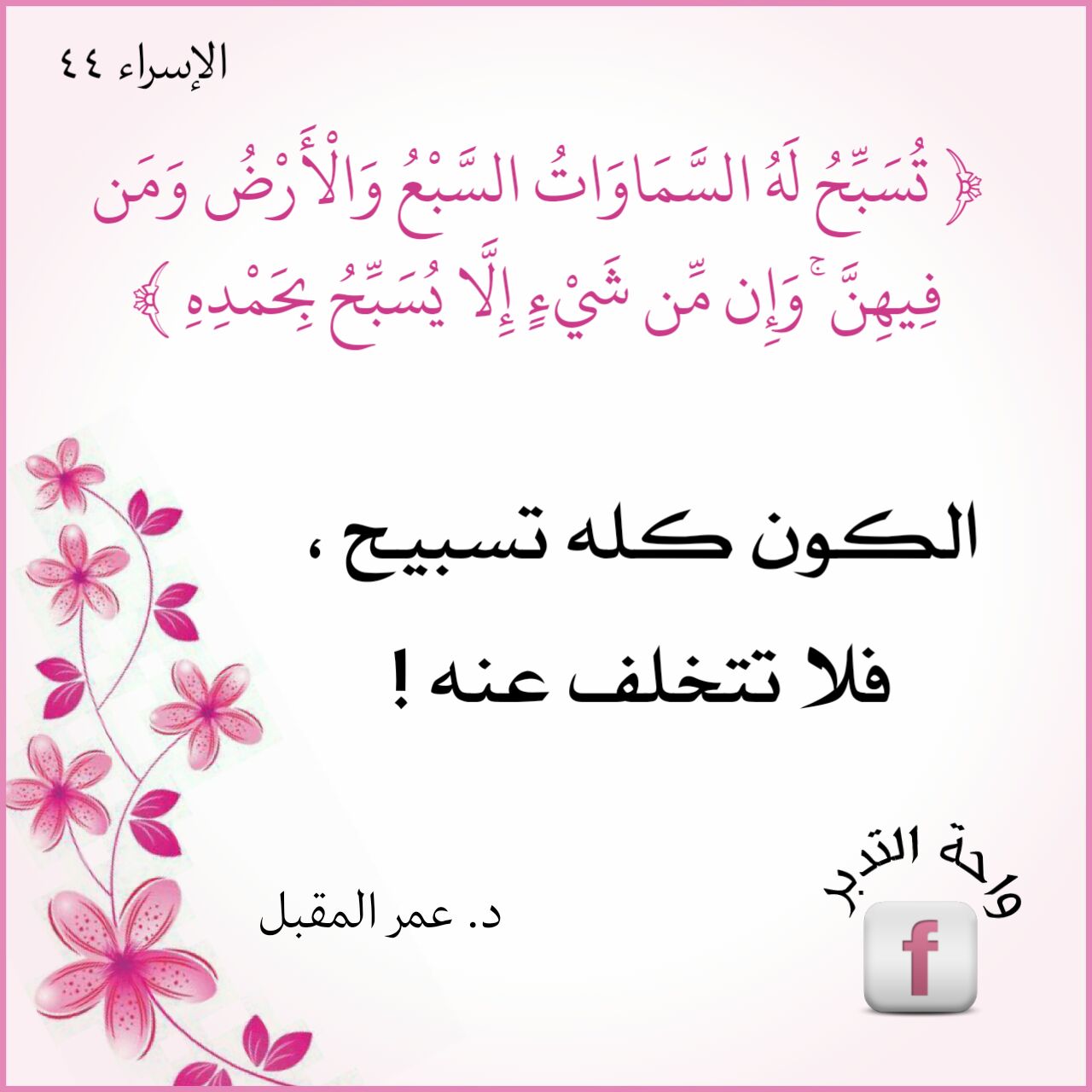 ﴿تُسَبِّحُ لَهُ السَّمَاوَاتُ السَّبْعُ وَالْأَرْضُ وَمَن فِيهِنَّ وَإِن مِّن شَيْءٍ إِلَّا يُسَبِّحُ بِحَمْدِهِ﴾: