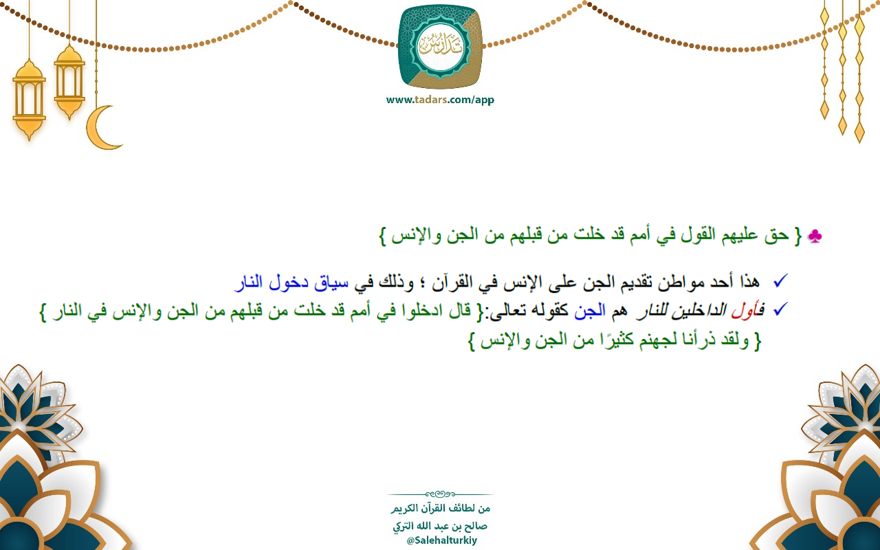 • { حق عليهم القول في أمم قد خلت من قبلهم من الجن والإنس }