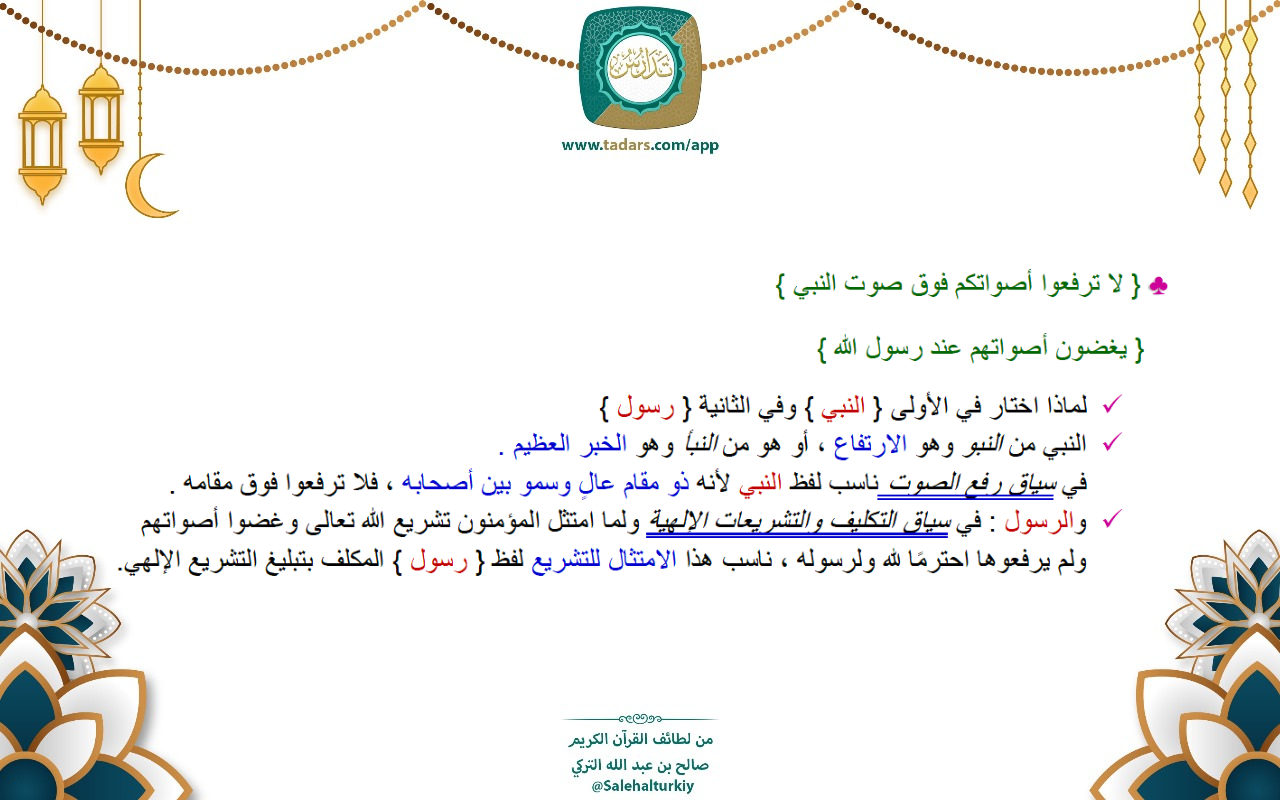 { يغضون أصواتهم عند رسول الله }