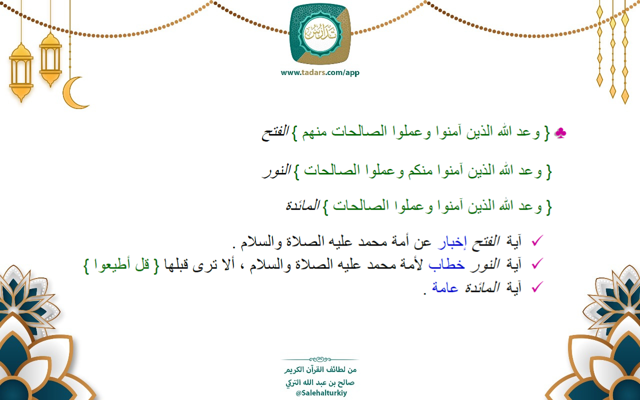 • { وعد الله الذين آمنوا وعملوا الصالحات منهم } الفتح