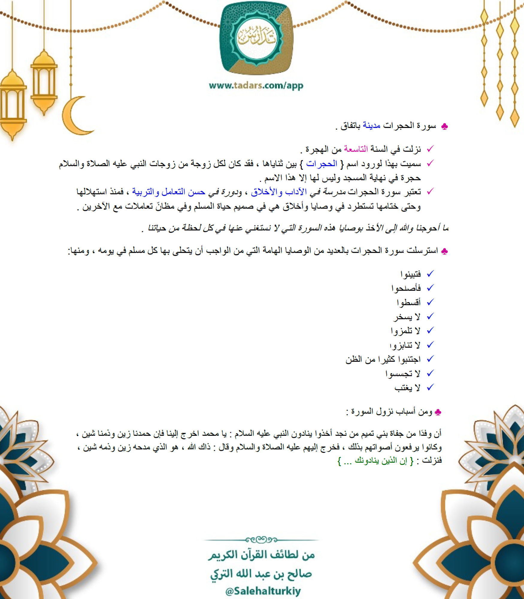 • سورة الحجرات مدينة باتفاق .