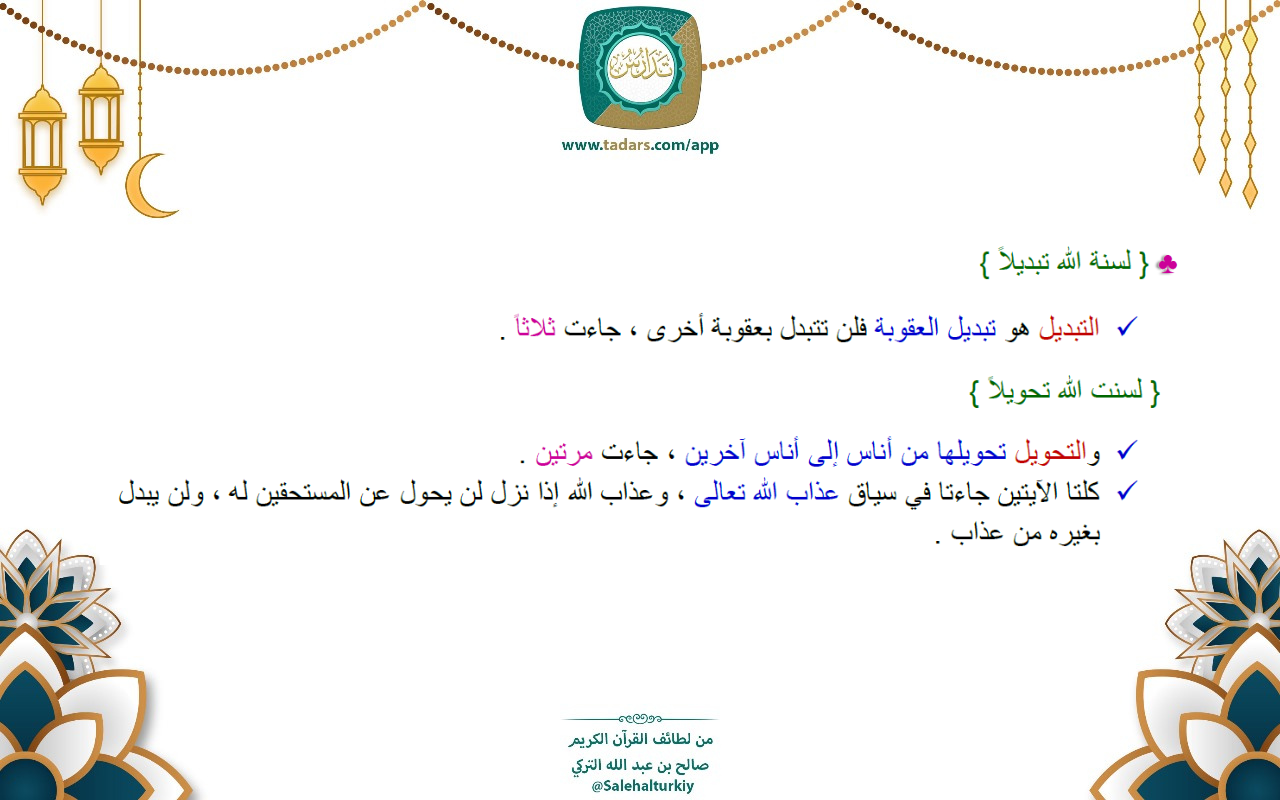 • { لسنة الله تبديلاً }