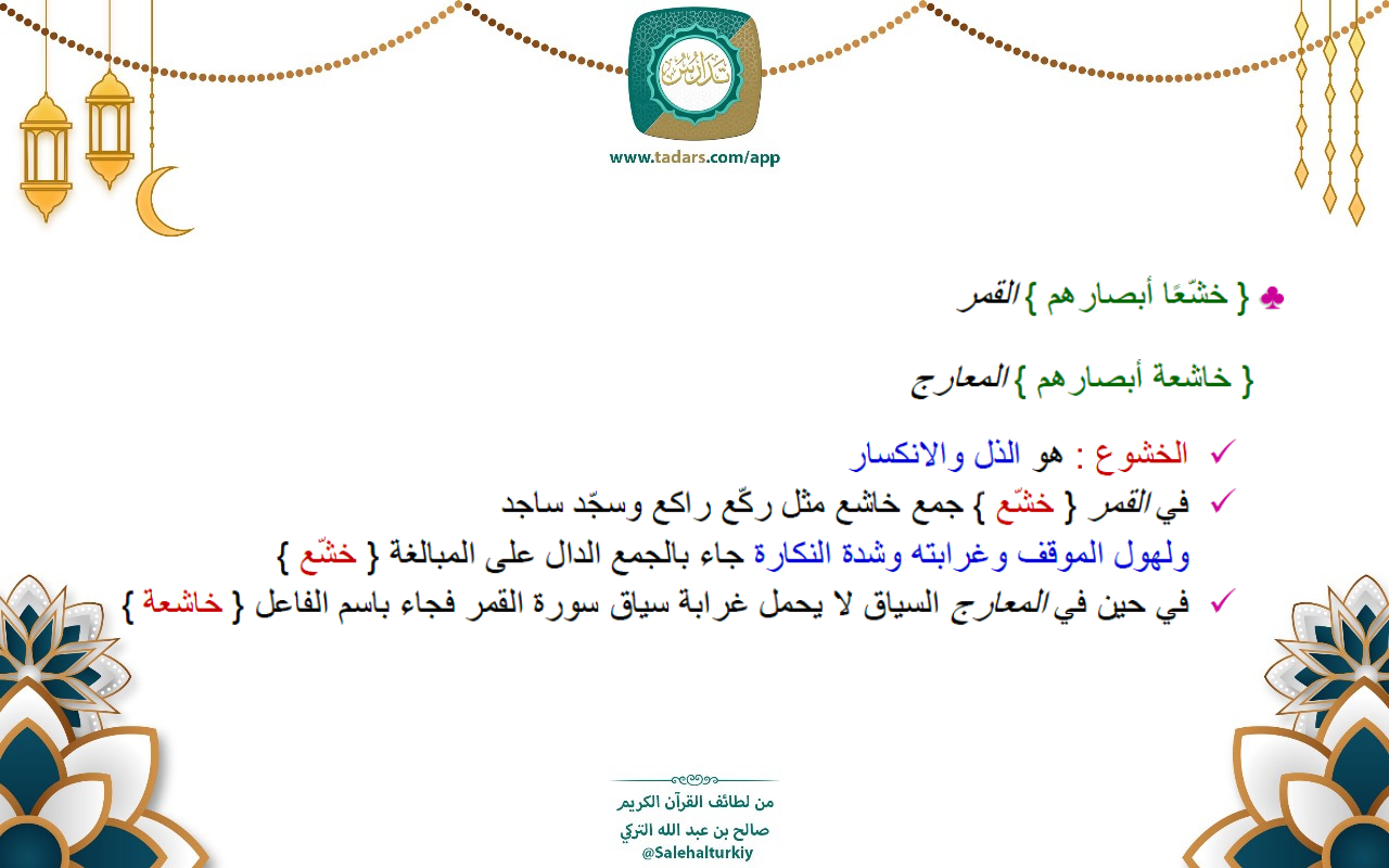 - في القمر { خشّع } جمع خاشع مثل ركّع راكع وسجّد ساجد
