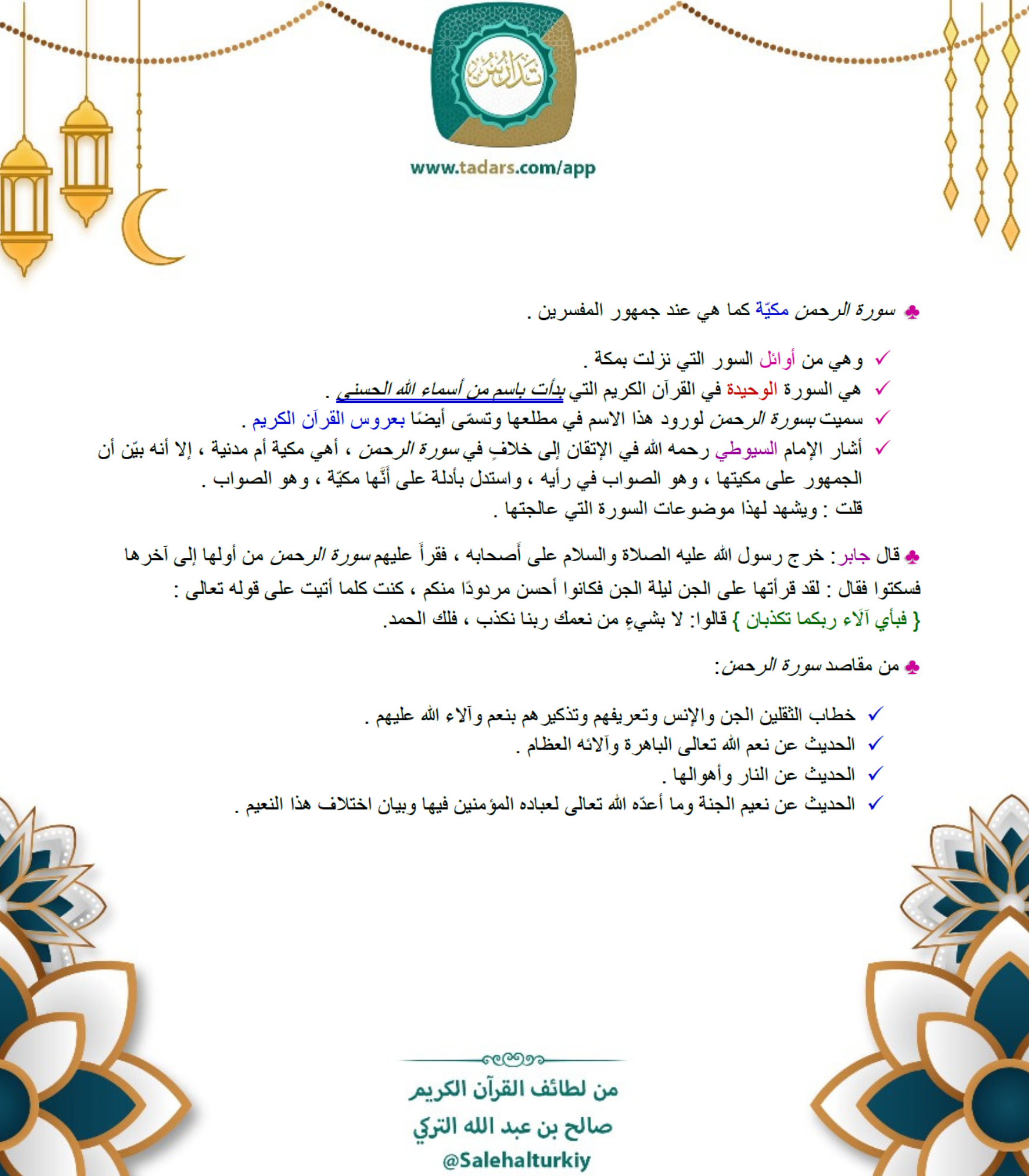 - سميت بسورة الرحمن لورود هذا الاسم في... المزيد