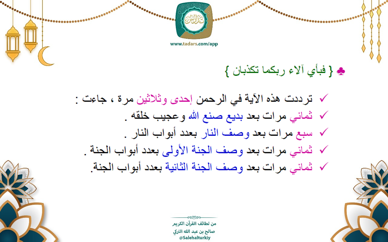 - ترددت هذه الآية في الرحمن إحدى وثلاثين مرة ، جاءت :