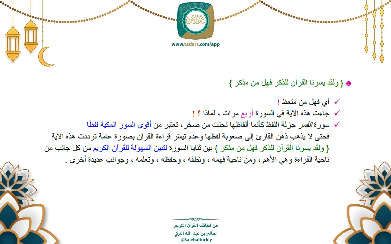 • { ولقد يسرنا القرآن للذكر فهل من مدّكر }