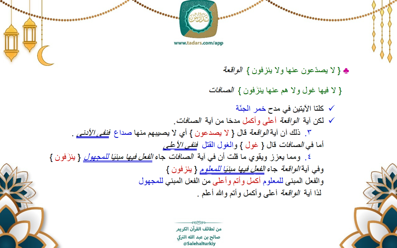 • { لا يصدّعون عنها ولا ينزِفون } الواقعة