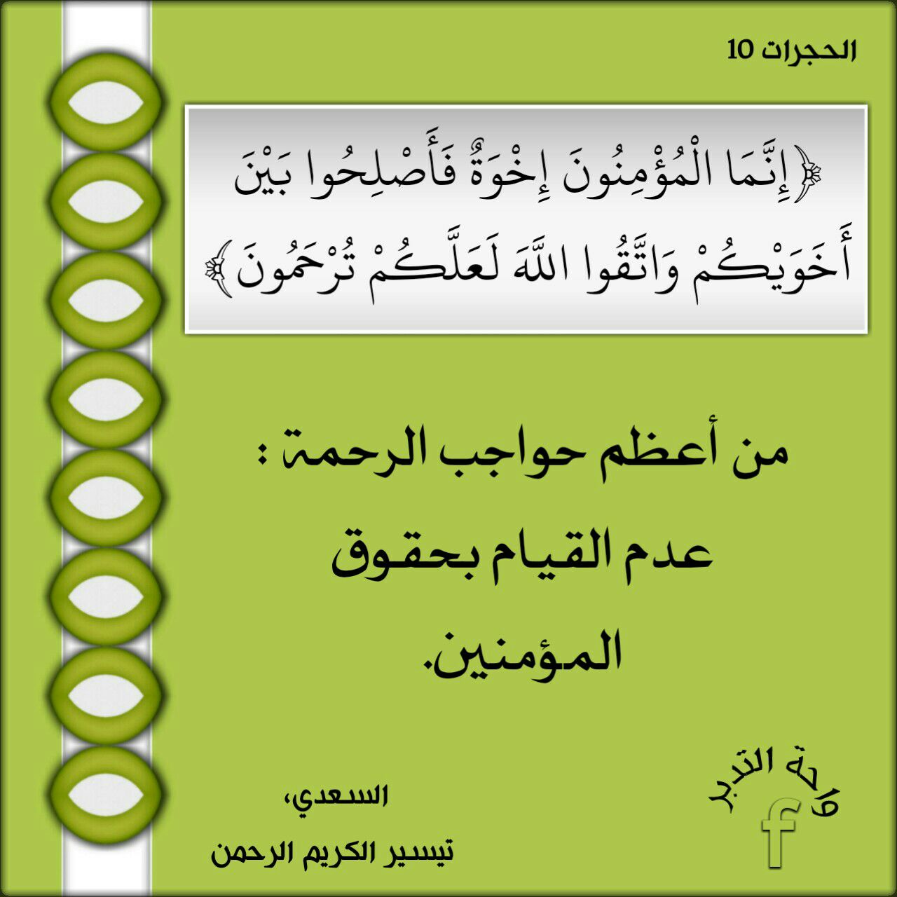 ﴿إِنَّمَا الْمُؤْمِنُونَ إِخْوَةٌ فَأَصْلِحُوا بَيْنَ أَخَوَيْكُمْ وَاتَّقُوا اللَّهَ لَعَلَّكُمْ تُرْحَمُونَ﴾: