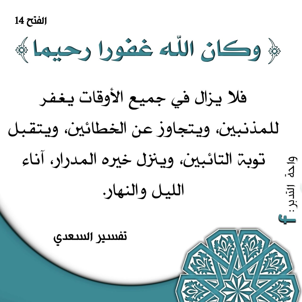 فلا يزال في جميع الأوقات يغفر للمذنبين، ويتجاوز عن الخطائين، ويتقبل توبة التائبين، وينزل خيره المدرار، آناء الليل والنهار.