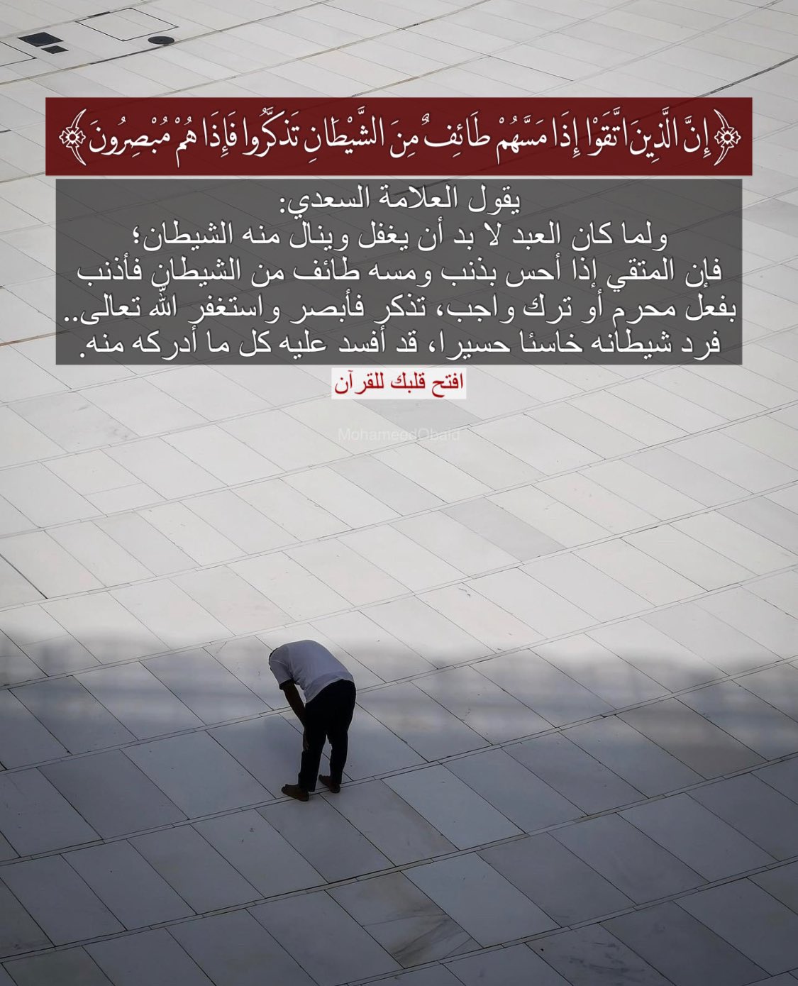 ﴿إِنَّ الَّذِينَ اتَّقَوْا إِذَا مَسَّهُمْ طَائِفٌ مِّنَ الشَّيْطَانِ تَذَكَّرُوا فَإِذَا هُم مُّبْصِرُونَ﴾: