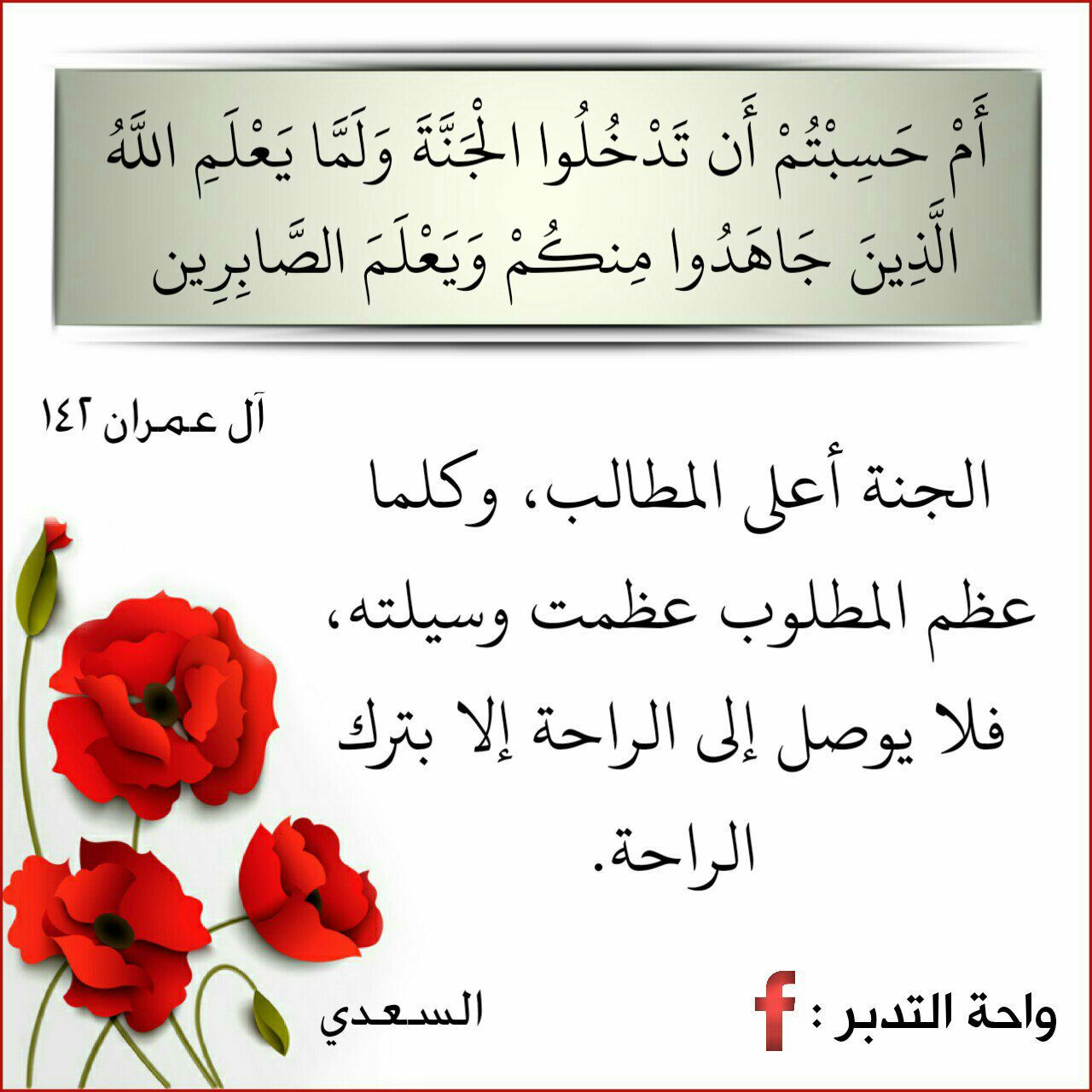 ﴿أَمْ حَسِبْتُمْ أَن تَدْخُلُوا الْجَنَّةَ وَلَمَّا يَعْلَمِ اللَّهُ الَّذِينَ جَاهَدُوا مِنكُمْ وَيَعْلَمَ الصَّابِرِينَ﴾: