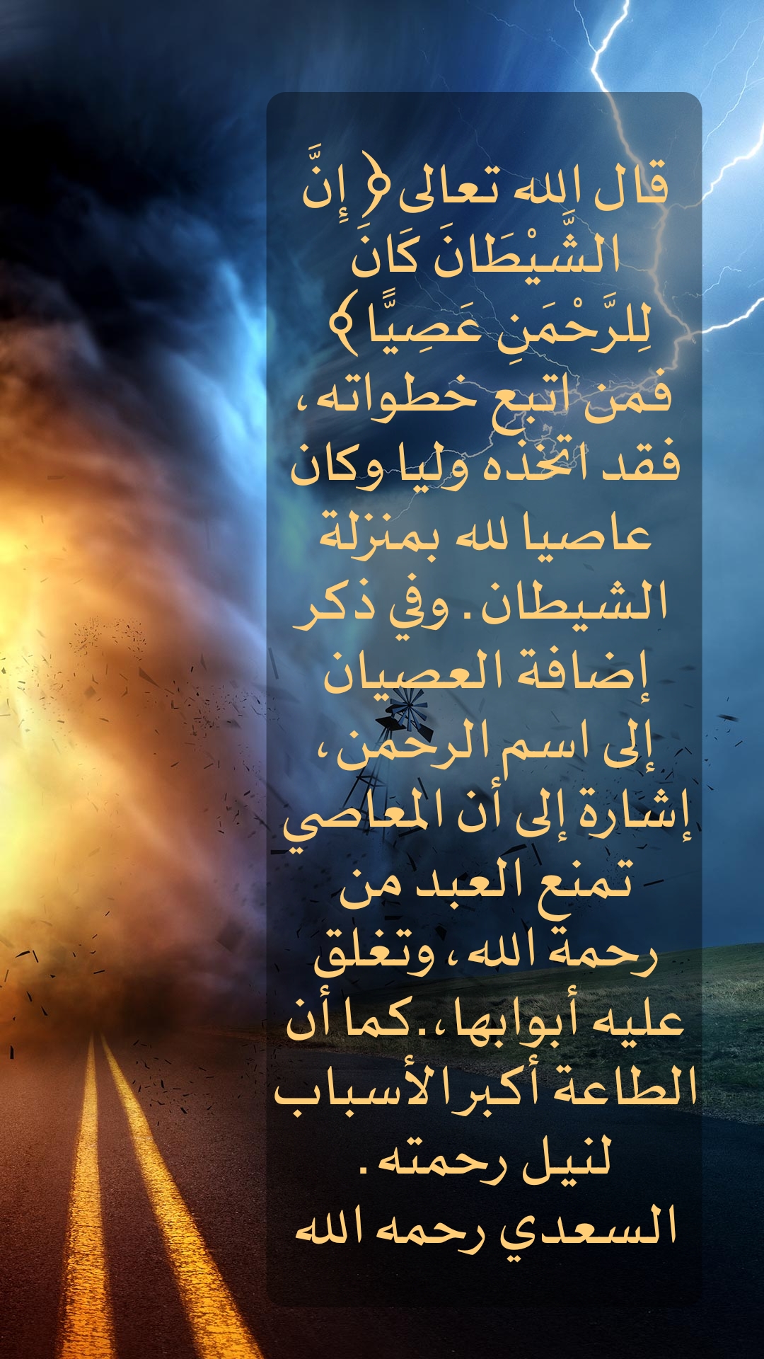 وفي ذكر إضافة العصيان إلى اسم الرحمن، إشارة إلى أن المعاصي تمنع العبد من رحمة الله ، وتغلق عليه أبوابها؛ كما أن الطاعة أكبر الأسباب لنيل رحمته .
