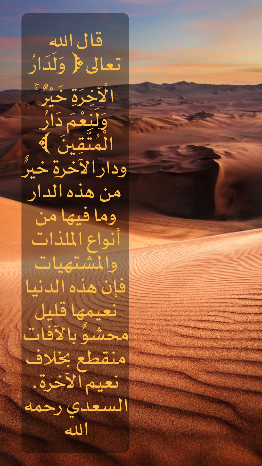 "وَلَدَارُ الْآخِرَةِ خَيْرٌ وَلَنِعْمَ دَارُ الْمُتَّقِينَ"