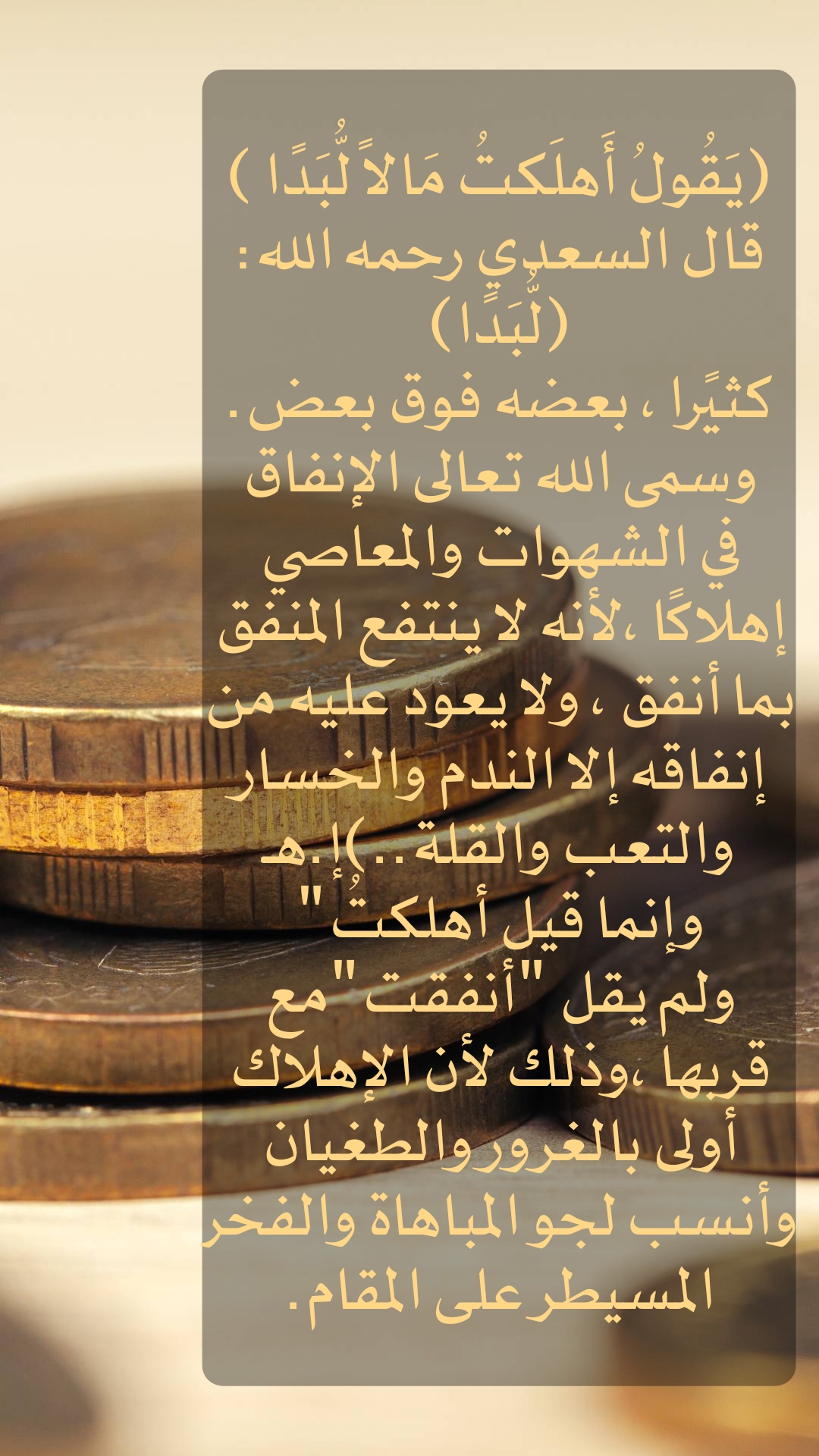 ( يَقُولُ أَهْلَكْتُ مَالًا لُّبَدًا ) قال السعدي رحمه الله :