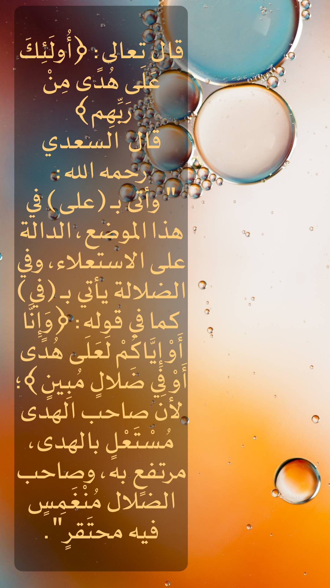 قال تعالى : ( أُولَئِكَ عَلَى هُدًى مِنْ رَبِّهِم )