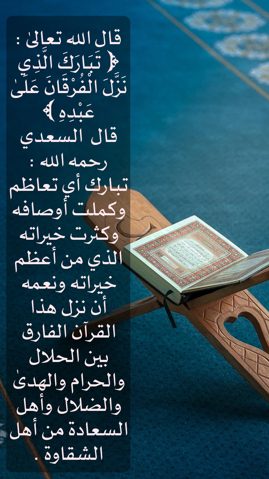 ﴿تَبَارَكَ الَّذِي نَزَّلَ الْفُرْقَانَ عَلَى عَبْدِهِ لِيَكُونَ لِلْعَالَمِينَ نَذِيرًا﴾