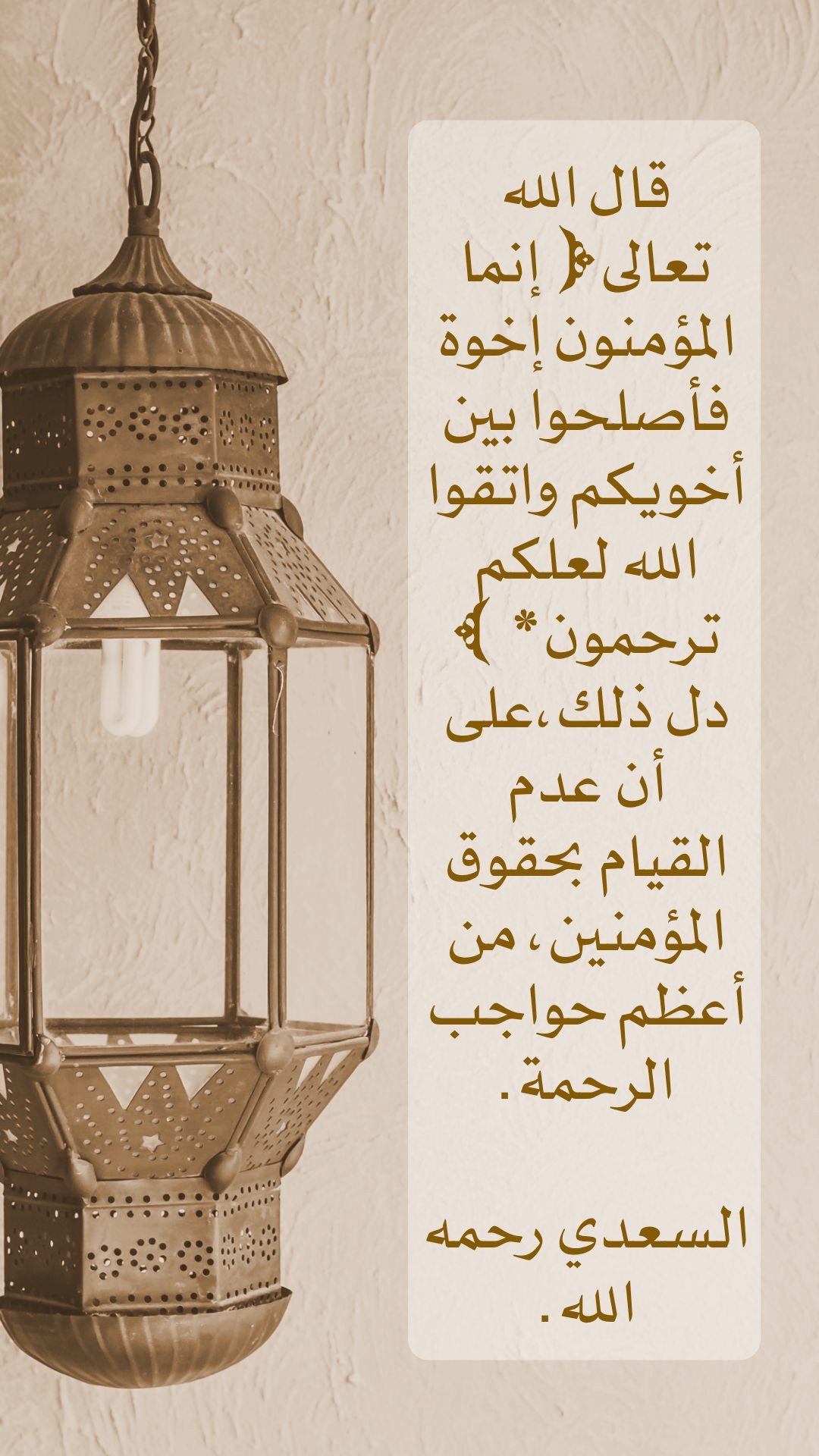 (إنما المؤمنون إخوة فأصلحوا بين أخويكم واتقوا الله لعلكم ترحمون ) دل ذلك ، على أن عدم القيام بحقوق المؤمنين، من أعظم حواجب الرحمة .