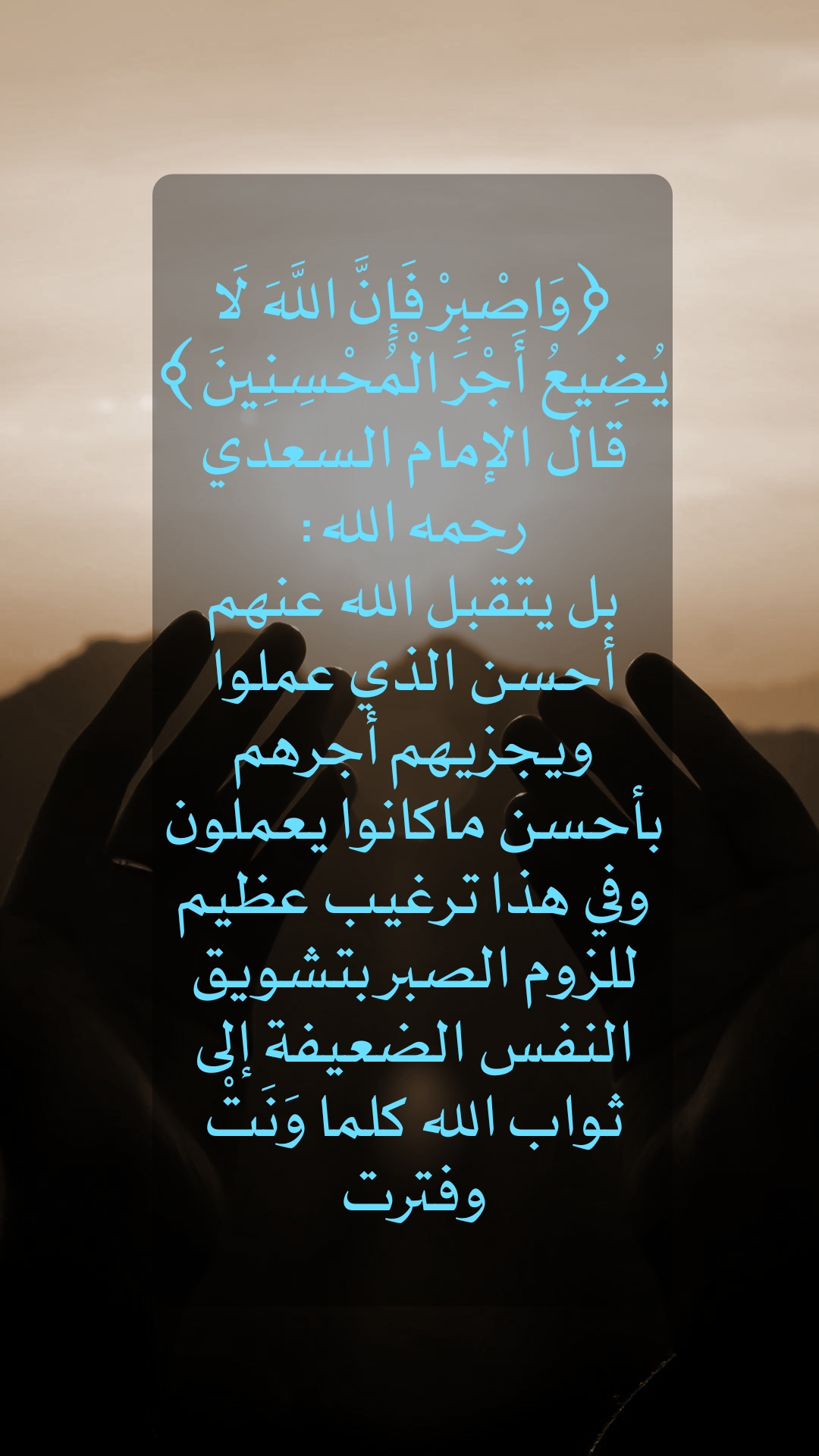 (وَاصْبِرْ فَإِنَّ اللَّهَ لَا يُضِيعُ أَجْرَ الْمُحْسِنِينَ ) قال الإمام السعدي: