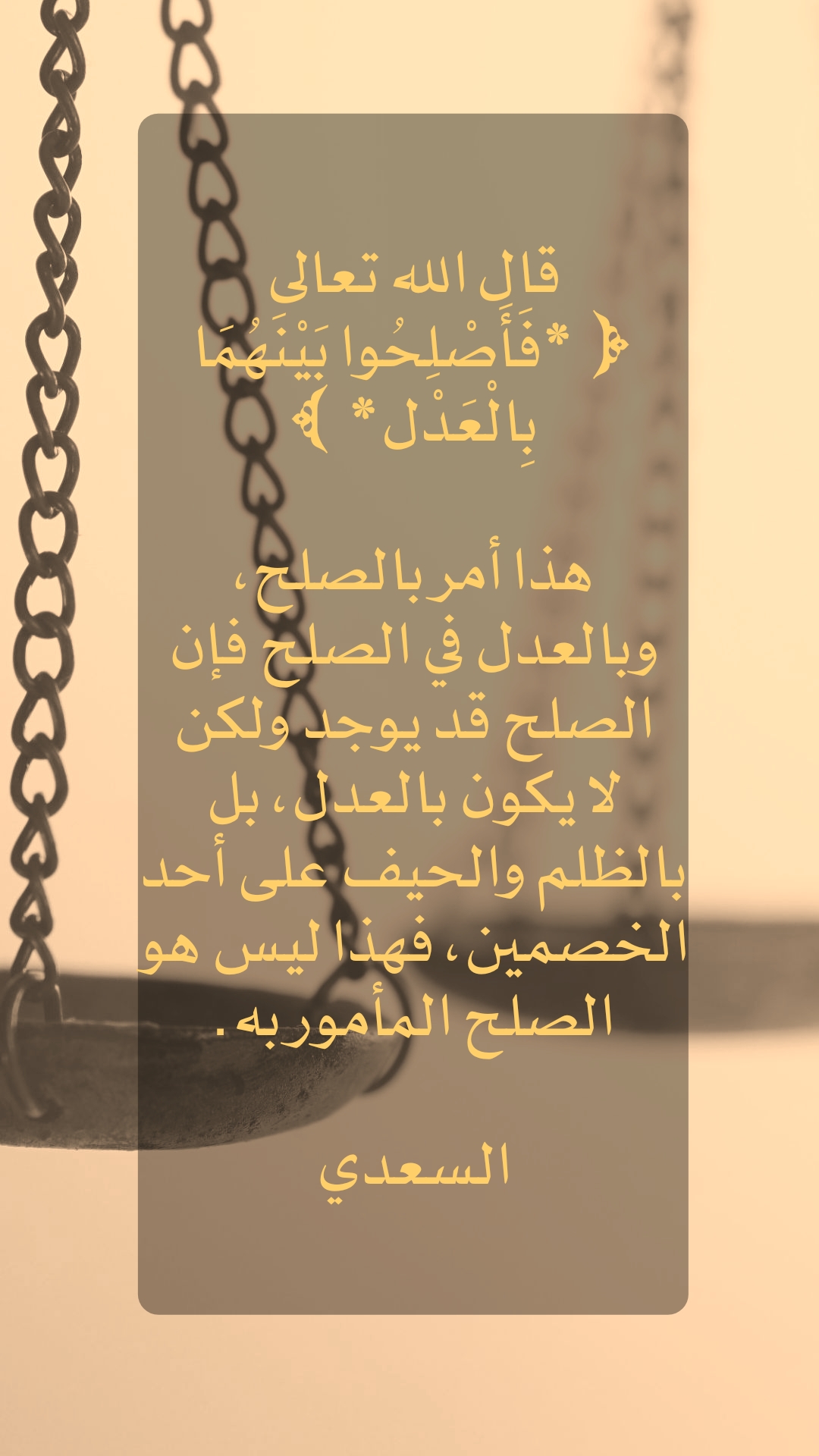 قال الله تعالى (فَأَصْلِحُوا بَيْنَهُمَا بالْعَدْل )