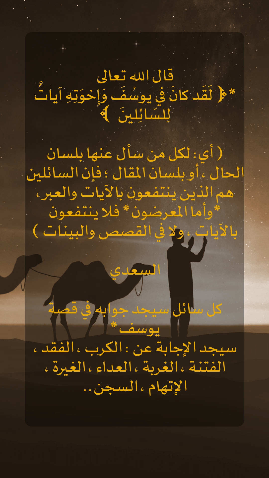قال الله تعالى (لقد كانَ في يُوسُفَ وَإِخْوَتِهِ آيَاتٌ لِلسَّائِلِينَ )