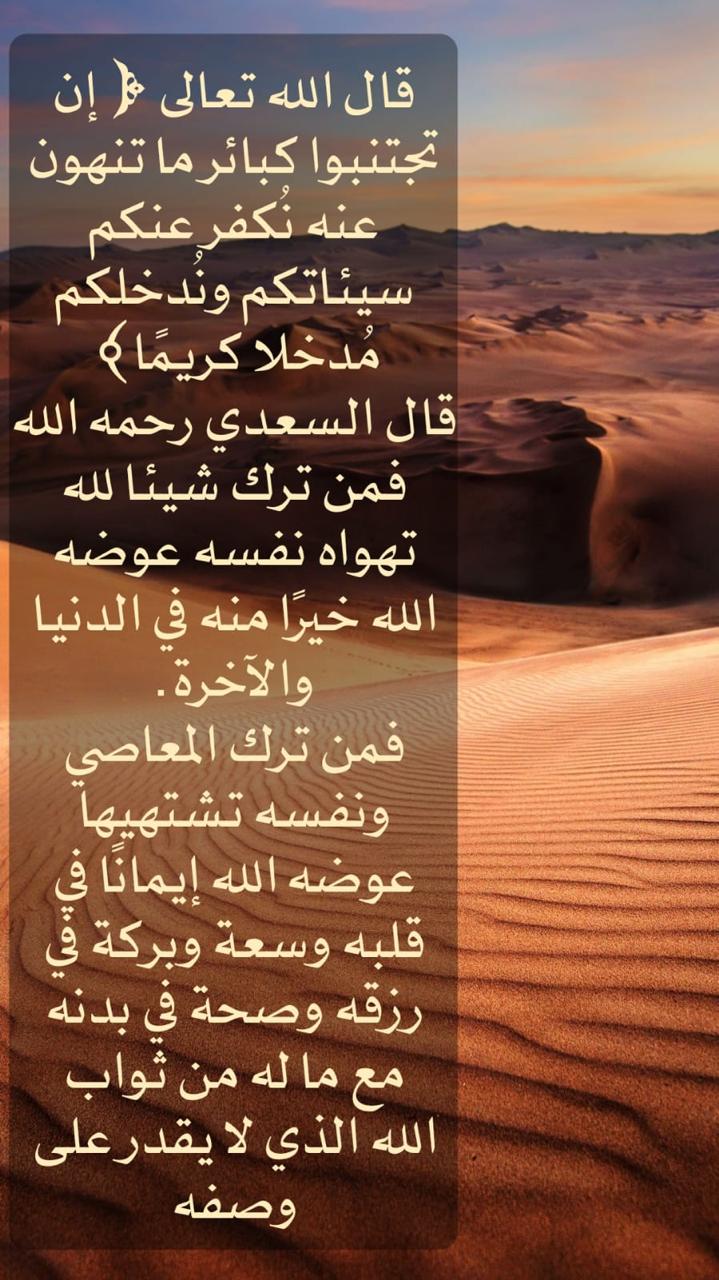 • فمن ترك شيئا لله -تهواه نفسه- عوضه الله خيرا منه في الدنيا وال... المزيد